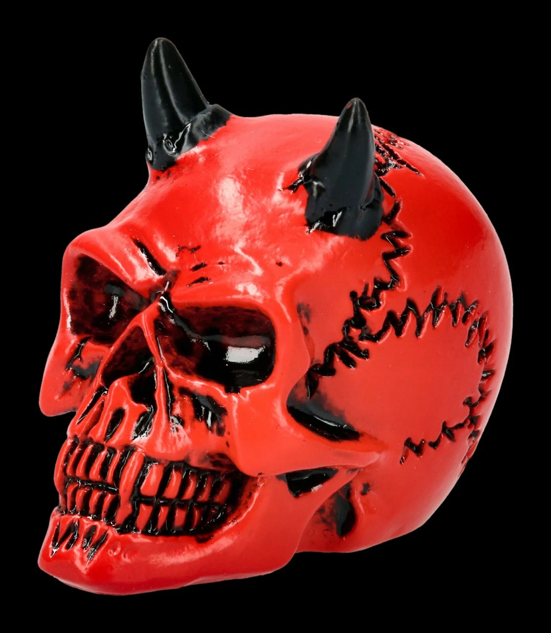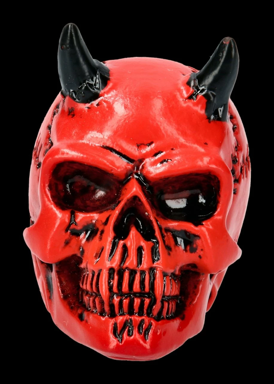 Auch wenn der kleine rote Teufel-Schädel von Alchemy England aus handbemaltem Kunststein (Polyresin) nur eine Höhe von 3 cm, eine Breite von 2,5 cm und eine Tiefe von 3,5 cm hat, ist der kleine rote Teufel außerordentlich detailliert dargestellt.