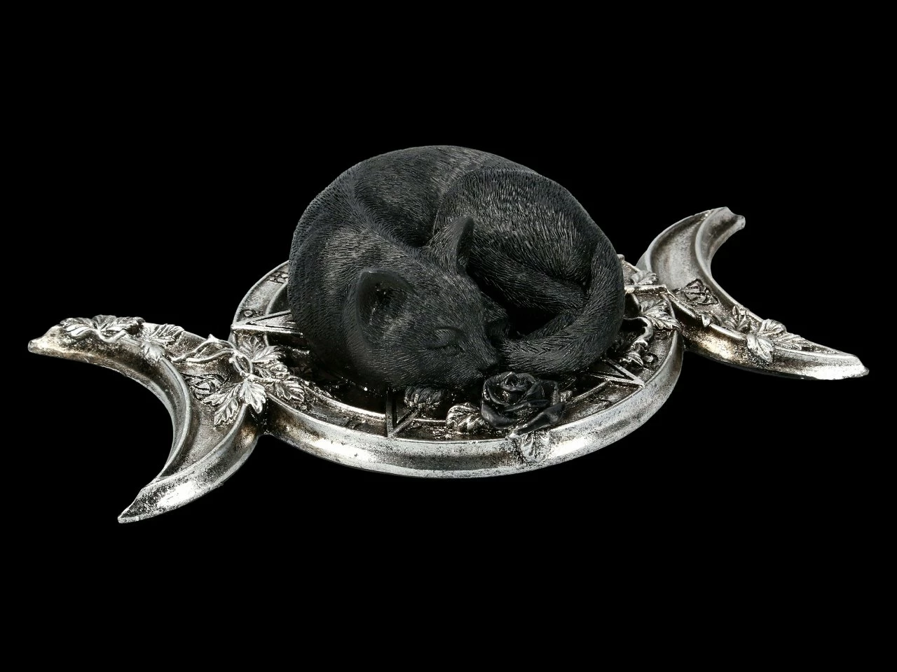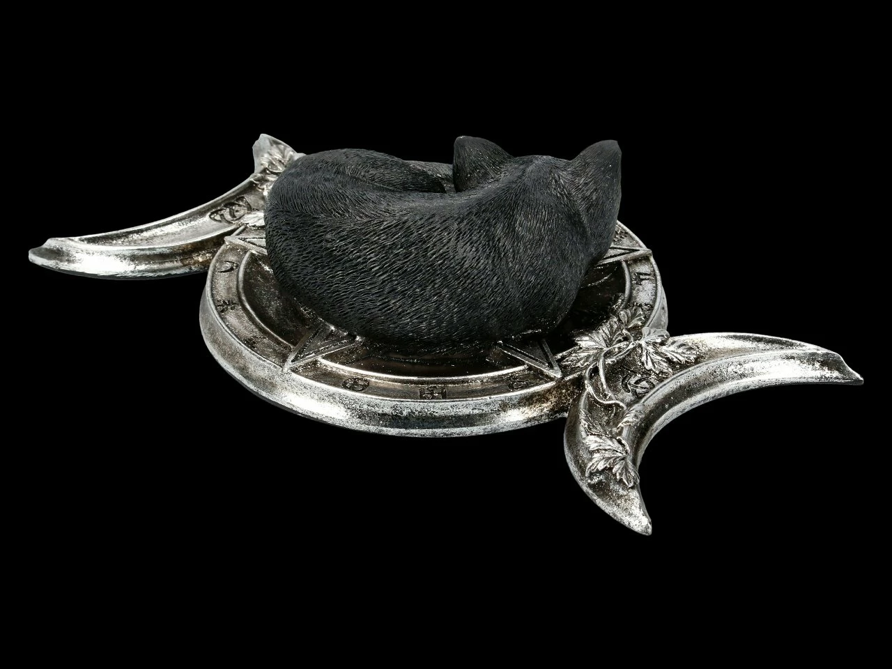Genau in die Mitte eines edlen silberfarbenen Dreifach-Mondes hat sich die kleine schwarze Hexenkatze friedlich zum Schlafen hingelegt. Diese niedliche Wicca Katze aus der The Vault Collection von Alchemy ist sehr detailreich aus liebevoll handbemaltem Kunststein (Polyresin) gefertigt. Die niedliche Katzenfigur Witches Familiar ist 5 cm hoch, 20 cm breit und 11,5 cm tief. Am liebsten steht sie da, wo sie auch sofort gesehen wird und ist auch das perfekte Geschenk für jeden Hexen- oder auch Katzenhaushalt.