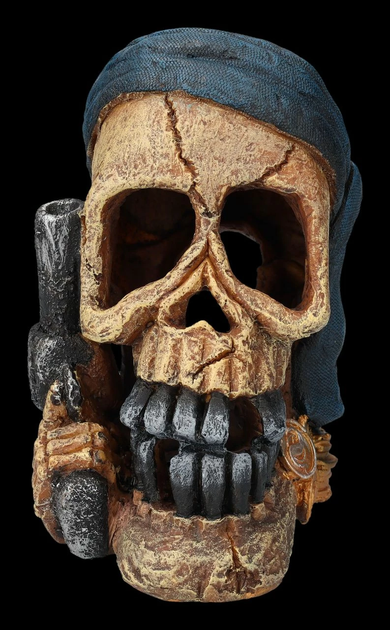Wenn Sie eine interessante Unterwasserwelt erschaffen möchten, dürfen Piraten in Ihrem Aquarium natürlich nicht fehlen. Der 19 cm hohe, 11 cm breite und 14 cm tiefe Totenkopf eines mit einer Pistole bewaffneten Piraten wurde von Aqua Della aus hochwertigem Polyesterharz gefertigt und ist für Süß- und Salzwasser geeignet. Wenn Sie in Ihrem Aquarium eine spannende Wasserwelt erschaffen möchten, gehört dieser faszinierende Piraten-Totenkopf mit der Pistole einfach dazu. Für eine ganze Mannschaft finden Sie weitere Piraten in unserem Shop. Bitte beachten Sie aber unbedingt die Sicherheitshinweise für unsere Aquarium Figuren.