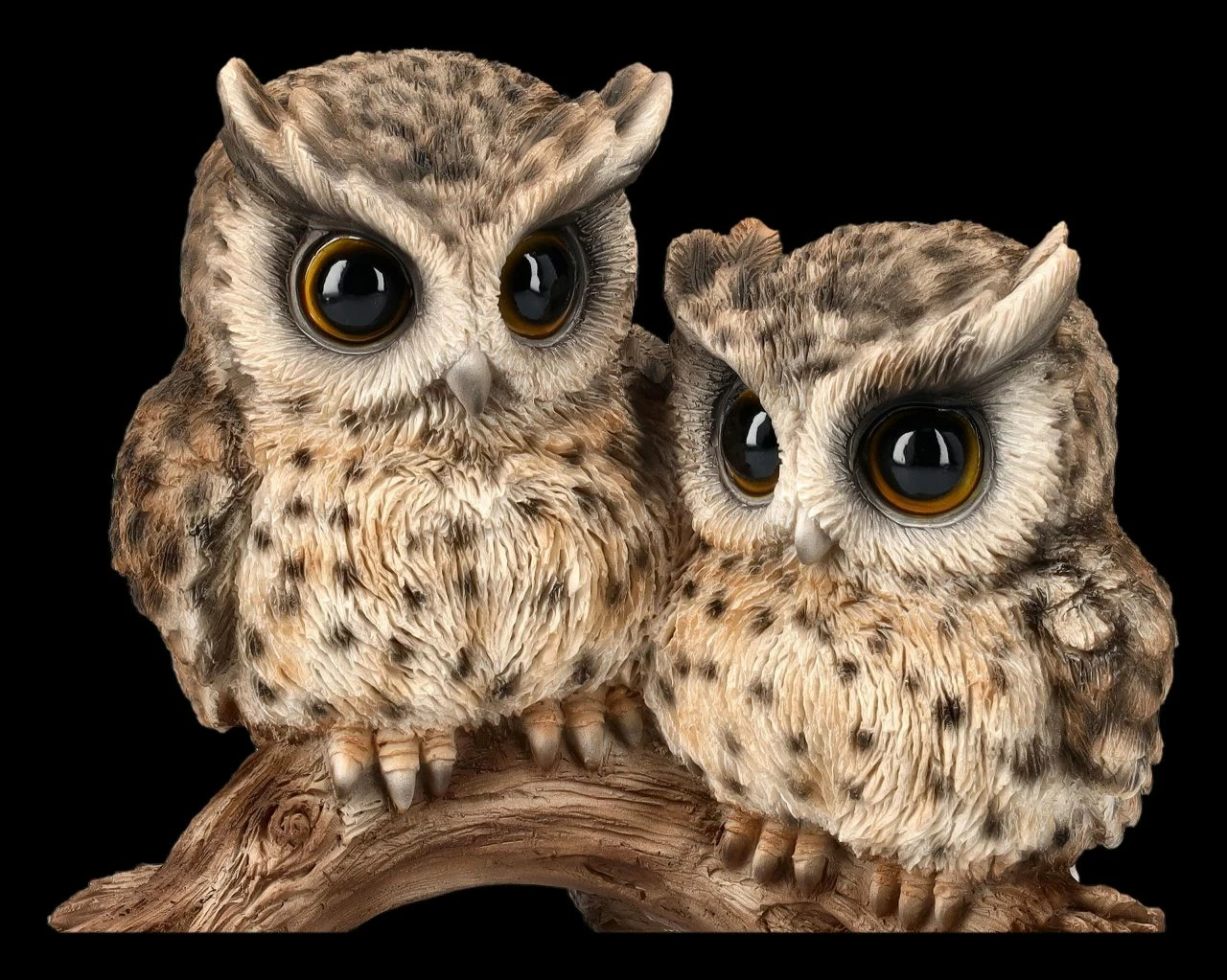 Nur die großen Augen der beiden niedlichen Baby Eulen sind sofort zu sehen. Sie sitzen ganz still gemeinsam auf einem Ast und scheinen auf die Rückkehr der Vogelmutter zu warten, die in der Dämmerung sofort auf Futtersuche losgeflogen ist. Die fantastisch realistischen Baby Eulen auf dem Ast wurden von HotAnt in gewohnter Weise hochwertig aus Kunststein (Polyresin) gefertigt und liebevoll handbemalt. Diese 14 cm hohe, 17 cm breite und 11 cm tiefe Vogel-Figur ist nicht nur eine wunderbare Deko auf der Blumen- oder Fensterbank, sondern auch ein perfektes Geschenk für alle Eulen- und Vogelfreunde.