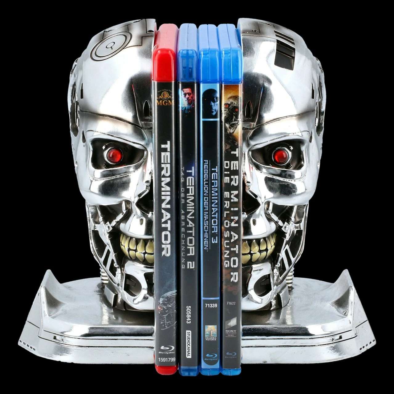 T-800 Terminator Kopf als Buchstützen – perfekt für Ihre Blu-ray Sammlung