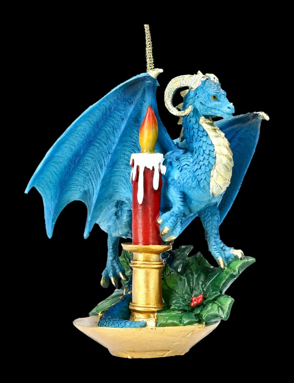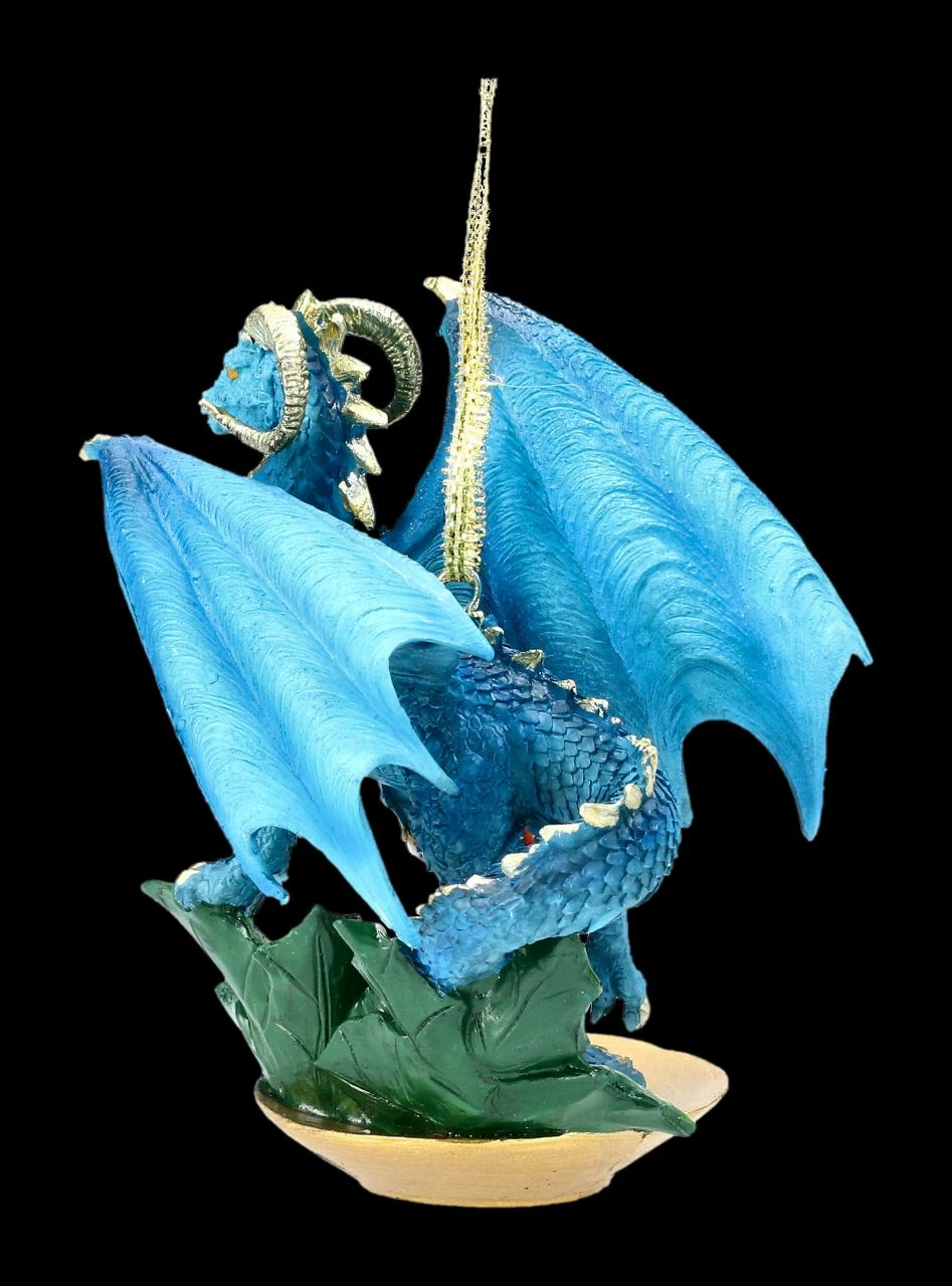Warum nicht mal etwas ganz anderes als Christbaumschmuck? Diesem liebevoll handbemalten blauen Weihnachts-Drachen aus Kunststein (Polyresin) wurden Widderhörner aufgesetzt. Der Weihnachtsdrache mit Kerze zum Hängen ist 12 cm hoch, 9 cm breit und 10 cm tief. Ausgefallen, sehr witzig und mit den anderen Weihnachtsdrachen aus unserem Shop kombinierbar ist der lustige blaue Weihnachts-Drache mit der Kerze, die Ihren Christbaum jedenfalls nie in Brand setzen wird.