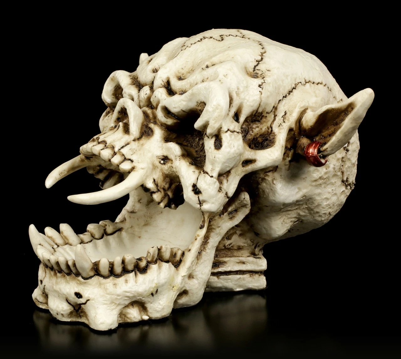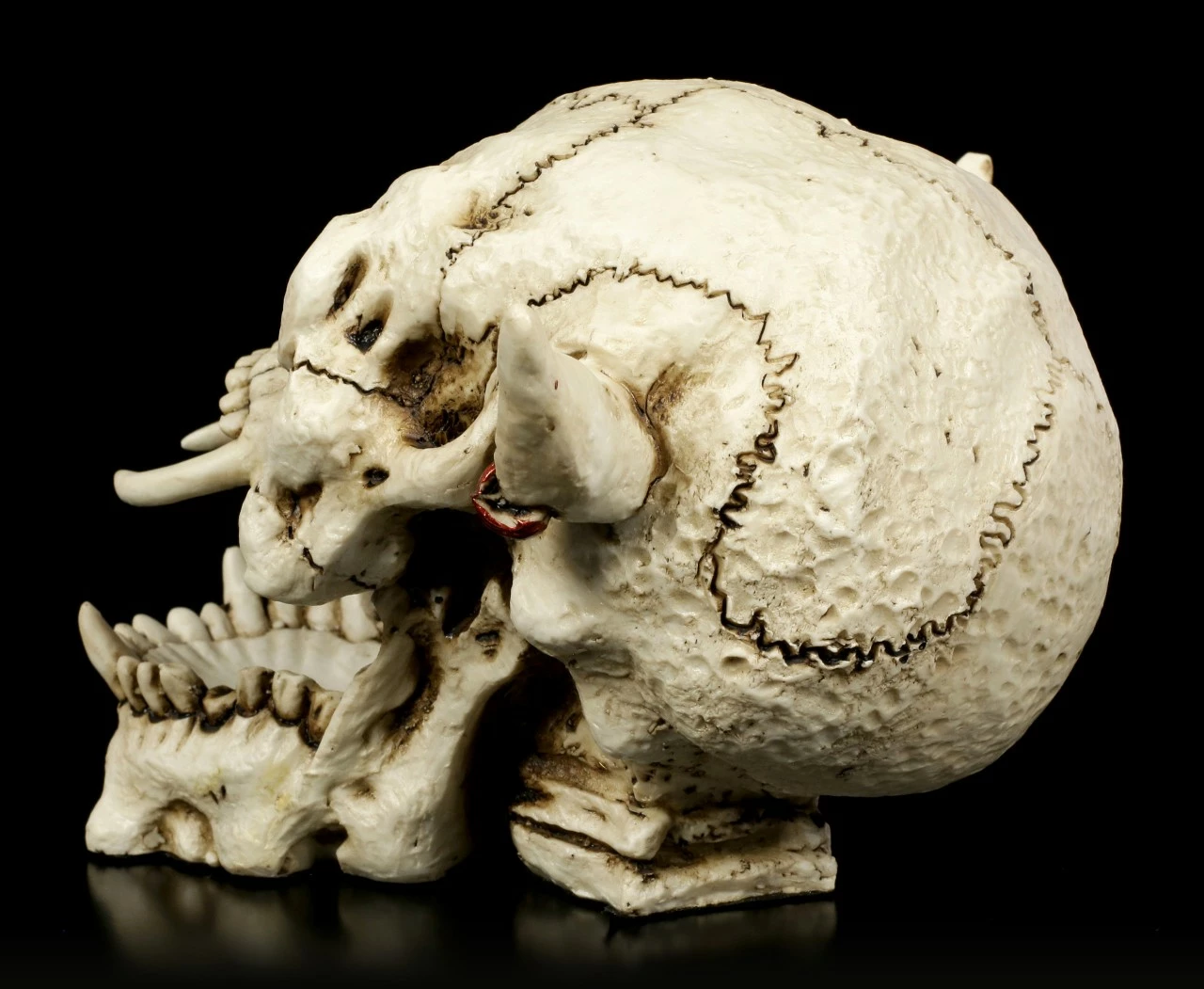 Der über und über mit Dornen versehene Totenkopf ist eine gruselige Ergänzung zu jeder Schädel Sammlung. Der dämonische Totenkopf mit spitzen Ohren hat sein Maul weit aufgerissen und in seinem Ohr ist ein Ohrring eingelassen. Der handbemalte Schädel aus Kunststein (Polyresin) ist einfach zum Fürchten.