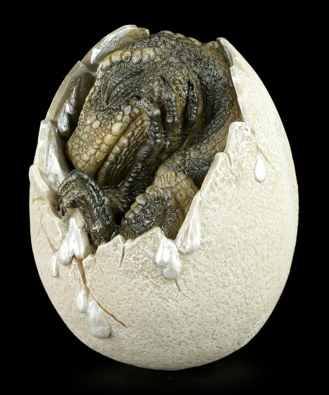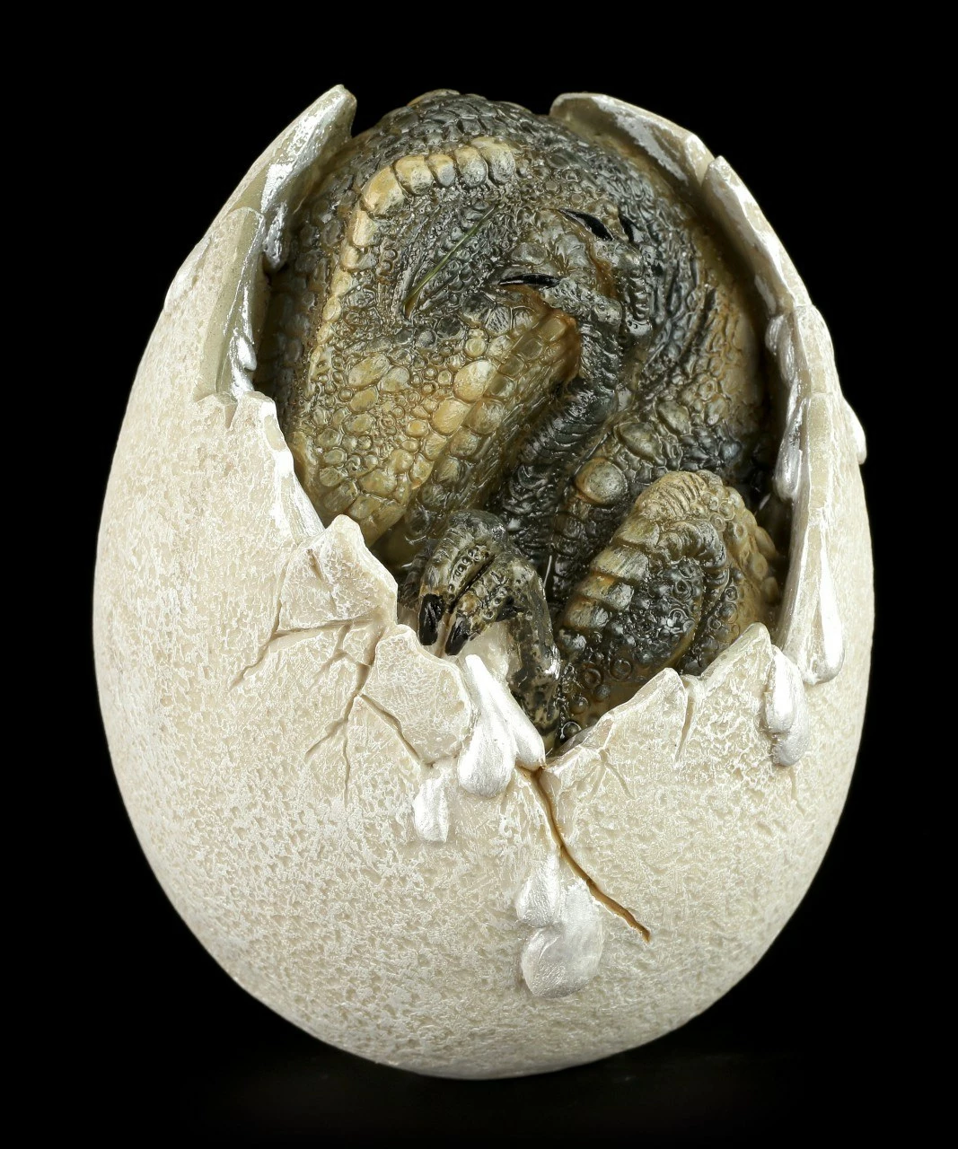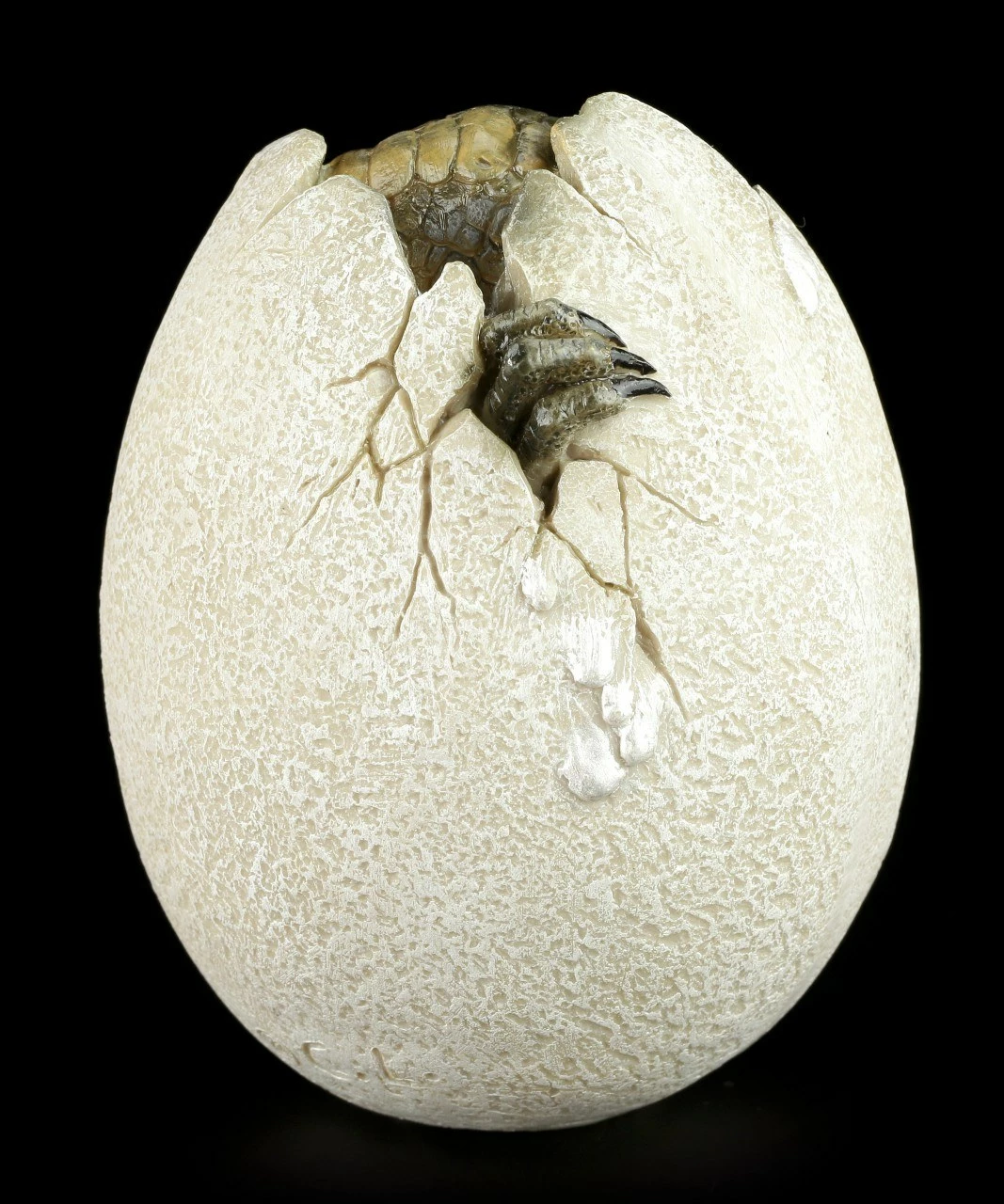 Der kleine Dinosaurier ist gerade dabei aus seinem Ei zu schlüpfen. Er ist schon neugierig auf die große weite Welt.