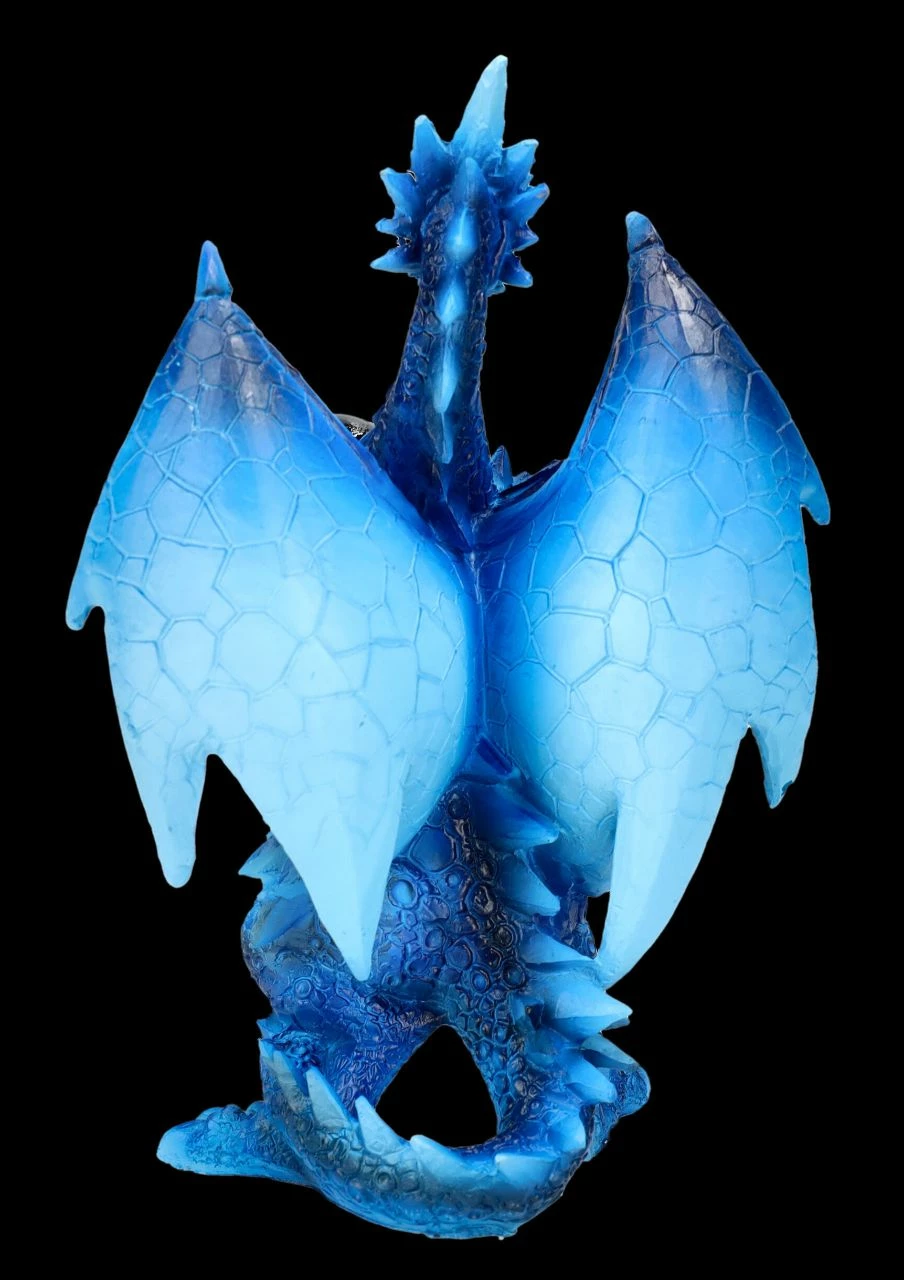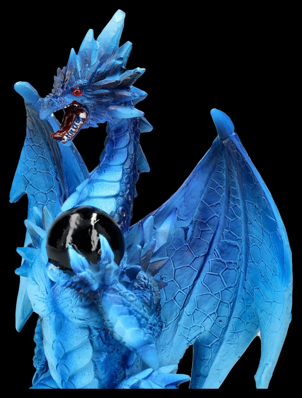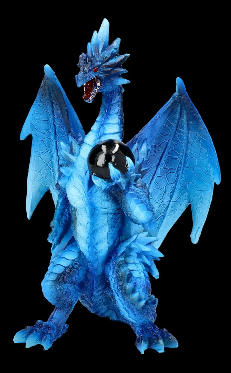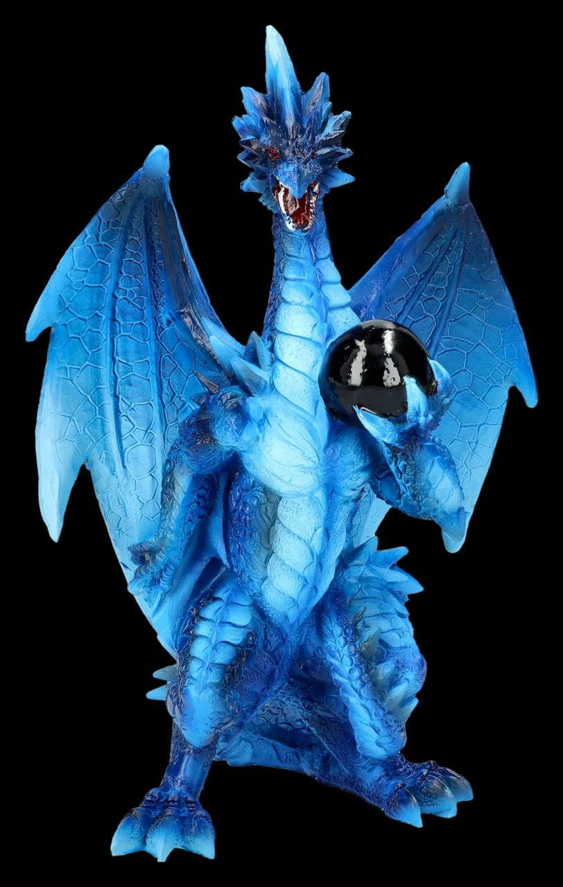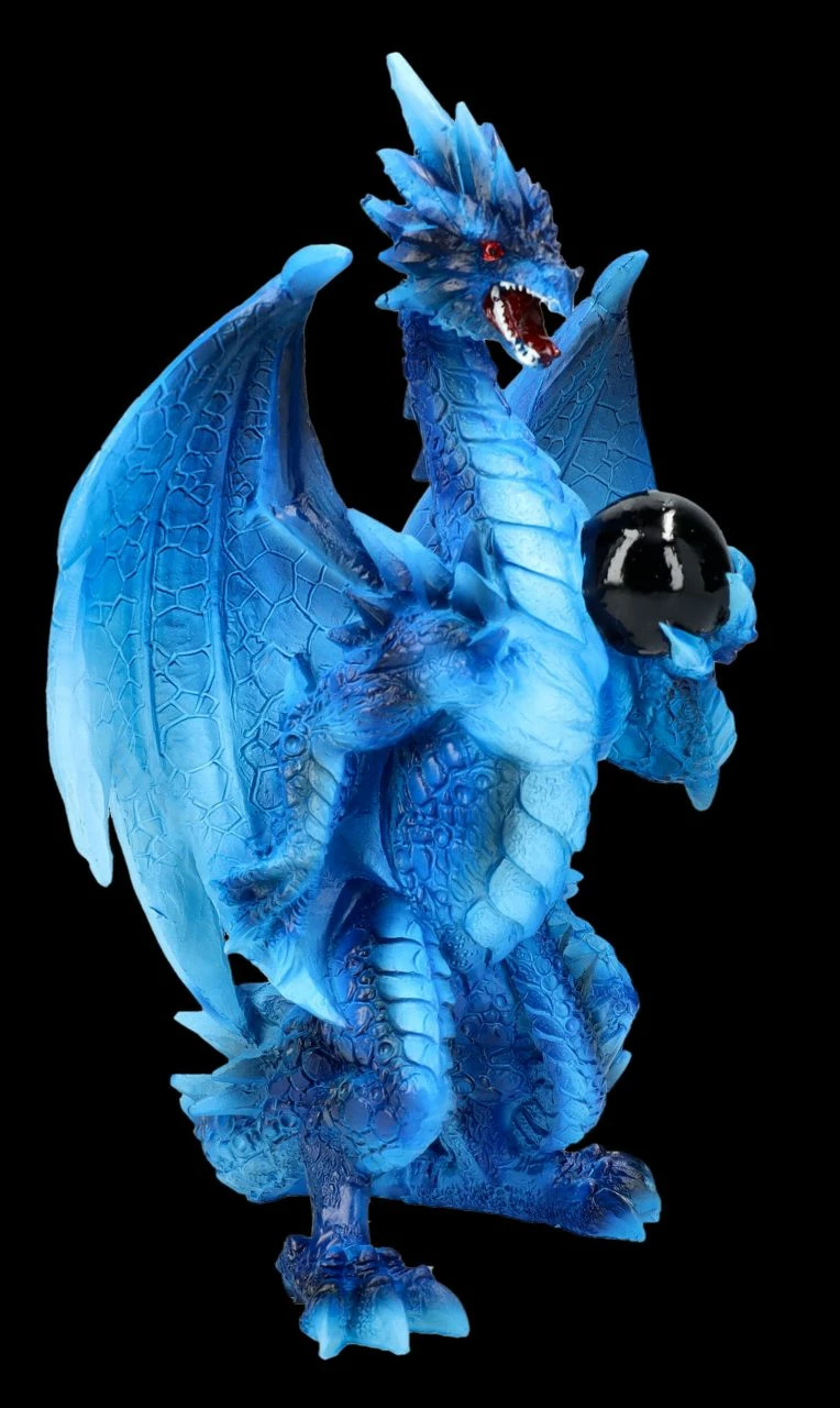 Hoch aufgerichtet hält der geheimnisvolle blaue Drache Yukiharu die schwarze Zauberkugel fest in den Händen. Niemand wird es wagen, sich diesem beeindruckenden Drachen zu nähern und die Kugel ungefragt zu schnappen. Die detailreiche mystische blaue Drachen Figur ‚Yukiharu’s Orb‘ aus handbemaltem Kunststein (Polyresin) ist 20 cm hoch, 13 cm breit und 9 cm tief. Für Sammler und auch für alle, die sich für die verborgene und geheimnisvolle Welt der Drachen, Elfen und Feen interessieren, ist diese kunstvolle Drachen Figur ein perfektes Geschenk.