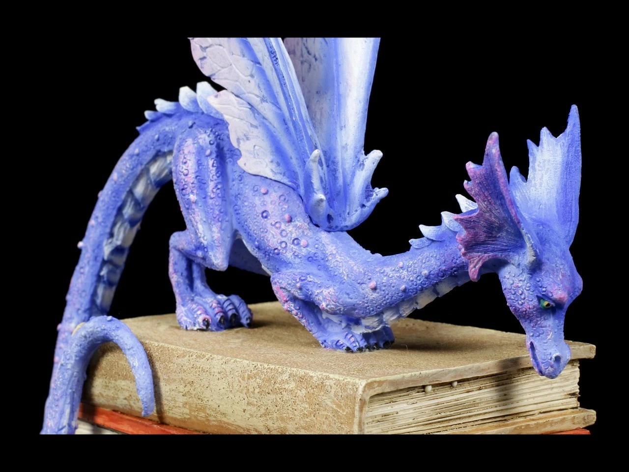 Lernen ist Wissen – Wissen ist Macht! Der Book Dragon der Künstlerin Amy Brown ist immer nur am Bücher wälzen. Die handbemalte Drachen Kunststein (Polyresin) Figur ist perfekt für einen Sammler. Der fliederfarbene Drache hat es sich auf seinem Bücherturm bequem gemacht und überlegt wohl schon, was er aus Buch Nummer vier lernen wird.