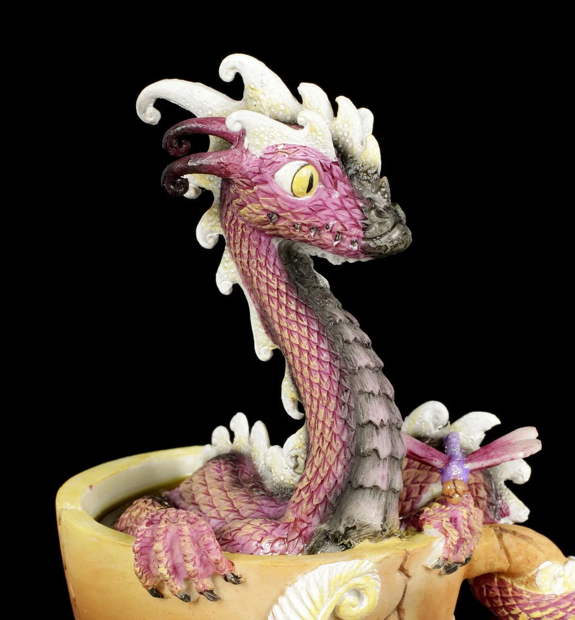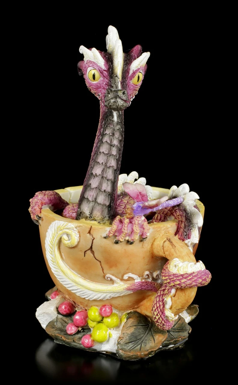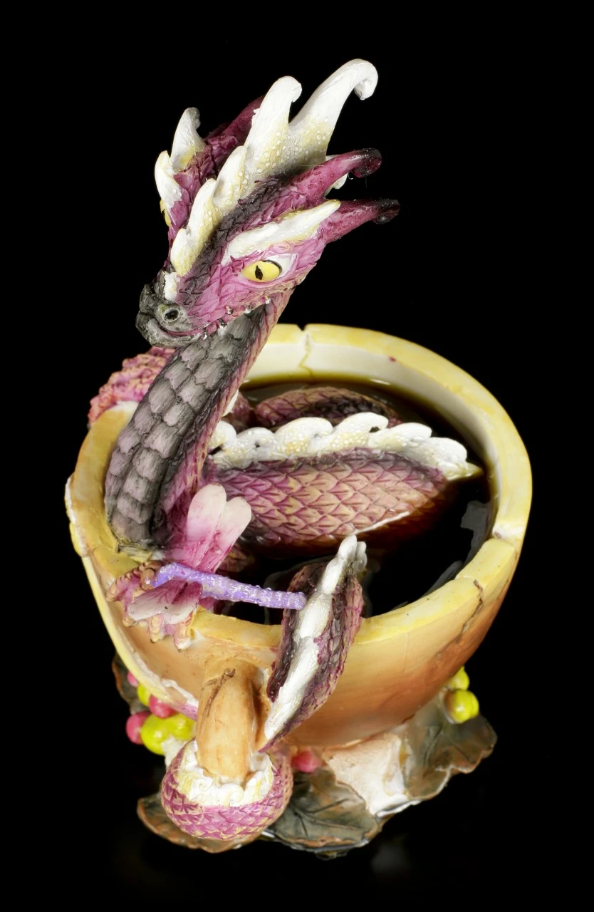 Kaffee, Kaffee muss ich haben…. Der kleine lila Drache Coffee Dragon schmettert die Kaffeekantate von Johann Sebastian Bach so laut, dass die Tasse einen Sprung bekommt. Der lustige Drache des bekannten Künstlers Stanley Morrison ist für einen Drachen Sammler ein Must Have. Der süße Drache liebt Kaffee über alles (Sie auch?!) und damit sein Tag gleich gut startet, badet er täglich in einer Tasse starkem Kaffee. Die handbemalte Figur aus Kunststein (Polyresin) ist einfach wundervoll anzusehen.
