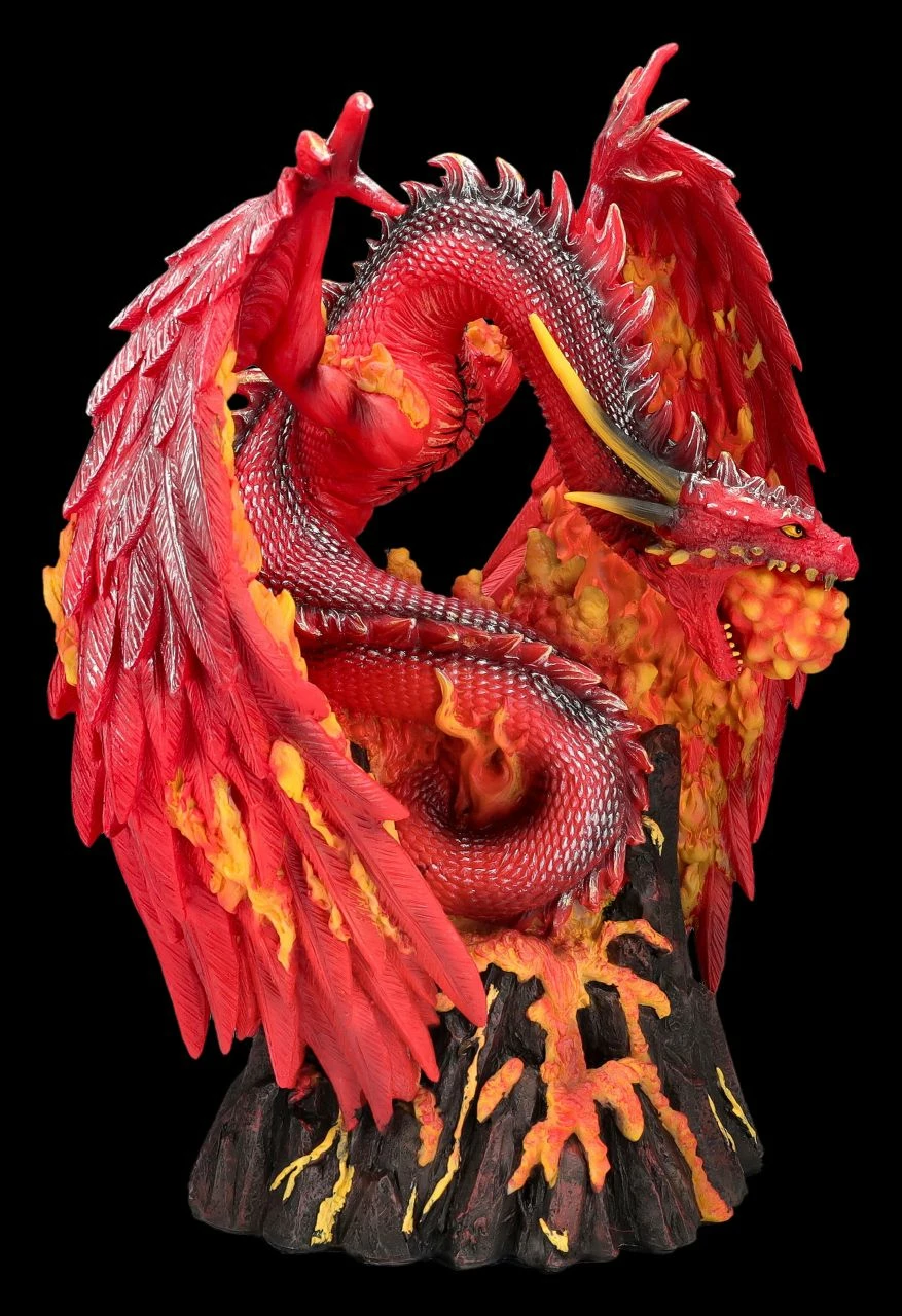 Derek W. Frost hat bei dieser Skulptur den wilden Charakter des Feuerdrachens perfekt eingefangen. Wild und angriffslustig bäumt sich der auf dem Felsen sitzende feuerrote Drache auf. Er ist bereit, alles in Schutt und Asche zu legen. Der Feuerdrache Asher von Derek W. Frost ist detailreich aus hochwertigem Kunststein (Polyresin) entstanden und wurde mit viel Liebe zum Detail von Hand bemalt. Die effektvolle Drachen Figur ist 38 cm hoch, 30 cm breit und 17 cm tief. Der prachtvolle Feuerdrache Asher ist eine fantasievolle Darstellung des Elementes ‚Feuer‘ und für alle Derek W. Frost Fans ein perfektes Geschenk zum Sammeln.