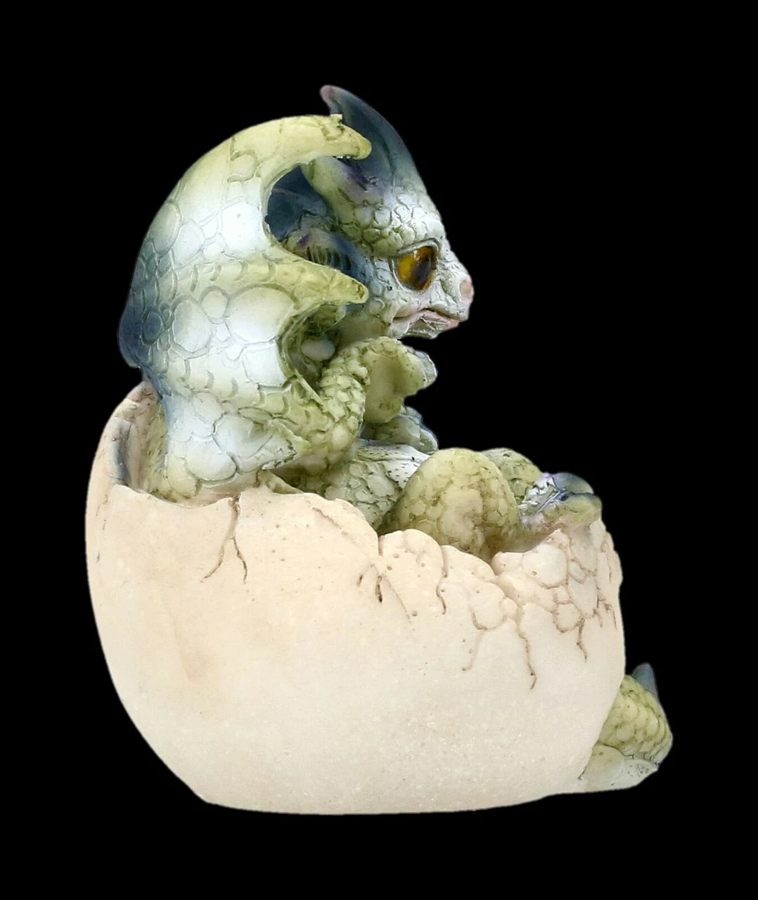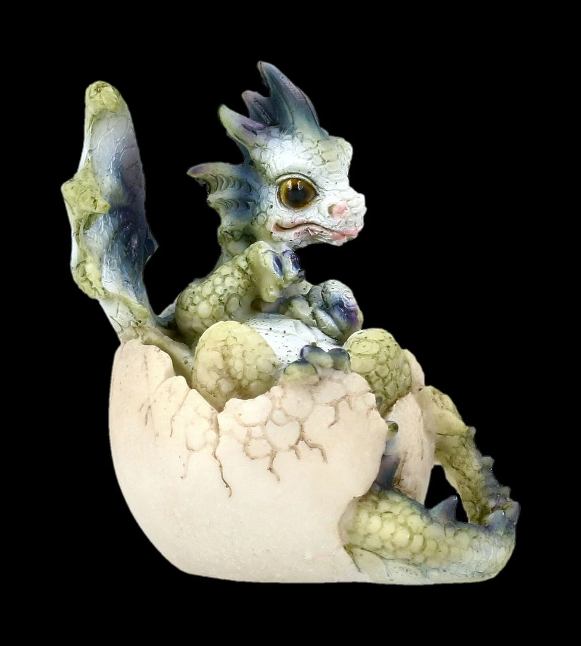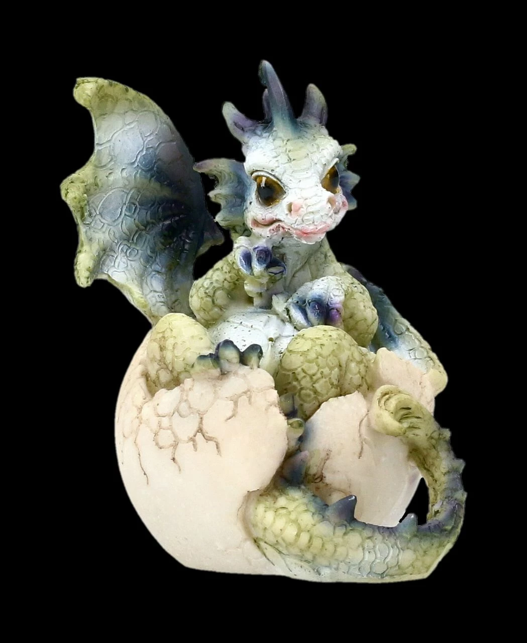 im Figuren Shop! Geh ich jetzt raus, oder warte ich noch ein paar Minuten? Das kleine Drachenbaby Tedy scheint sich vor dem Verlassen seines Eies lieber noch einmal ganz relaxed zurück zu lehnen. Der kleine, gerade aus seinem Ei schlüpfende Drache ist aus liebevoll handbemaltem Kunststein (Polyresin) gefertigt und 7 cm hoch, 5 cm breit und 6 cm tief. Für alle Sammler ist der lustige kleine Hatchlings Emergence Tedy ein tolles Geschenk. Weitere, gerade aus dem Ei schlüpfende Babydrachen warten übrigens in unserem Shop auf ihre Drachen-Freunde.