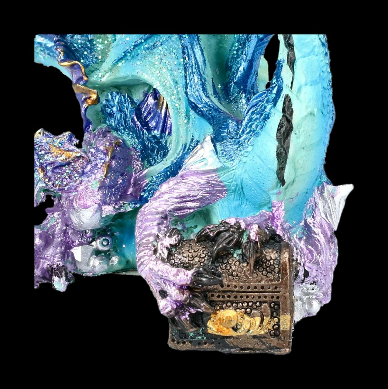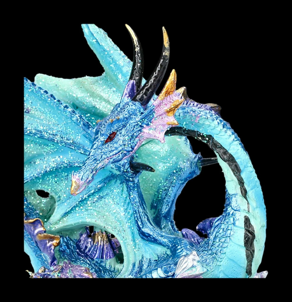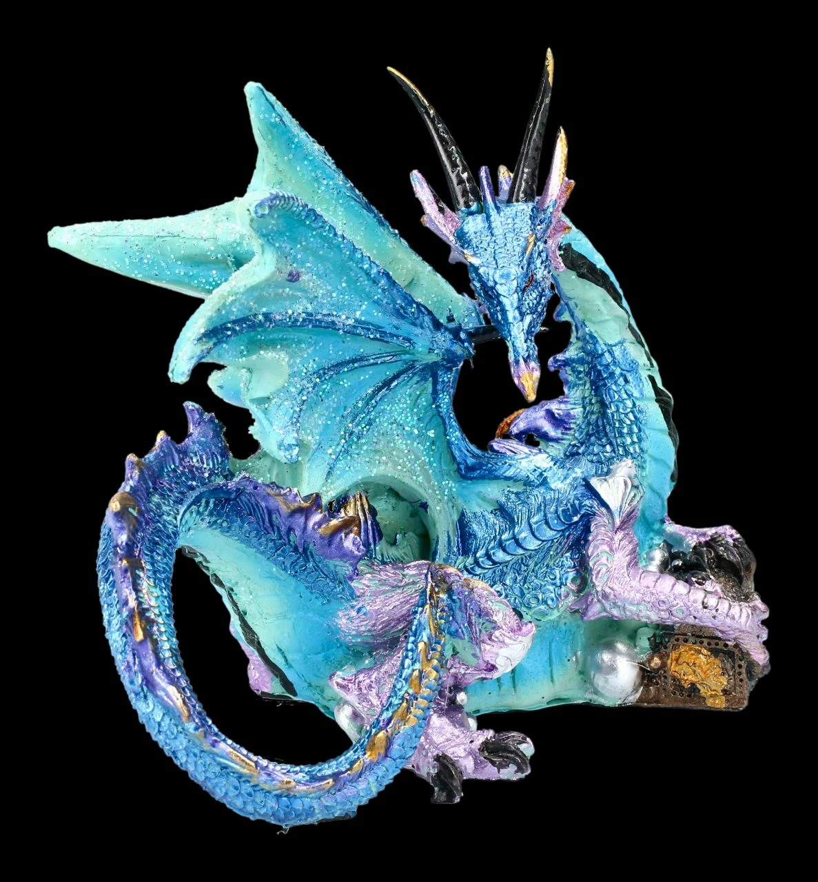 Blau ist eine absolut magische Farbe. Das dachte sich diese Drachendame Piasa bestimmt auch, denn sie ist ganz sichtlich begeistert von dem strahlenden Blau. Die hellblaue Drachen Figur mit der Höhe von 10 cm, der Breite von 12,5 cm und der Tiefe von 8 cm wurde liebevoll aus handbemaltem Kunststein (Polyresin) gefertigt. Über Piasa als Geschenk werden sich große und kleine Drachenfreunde freuen.