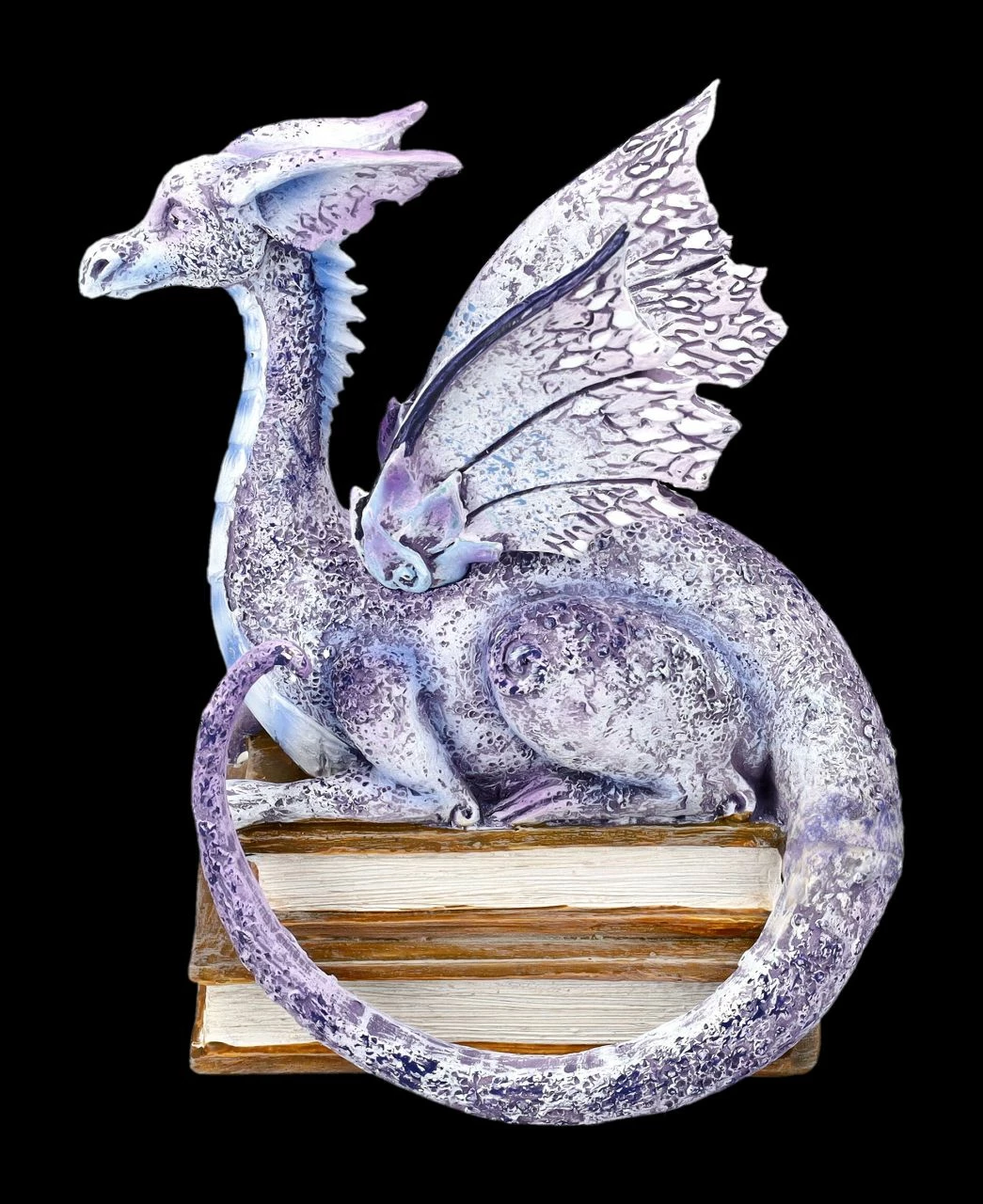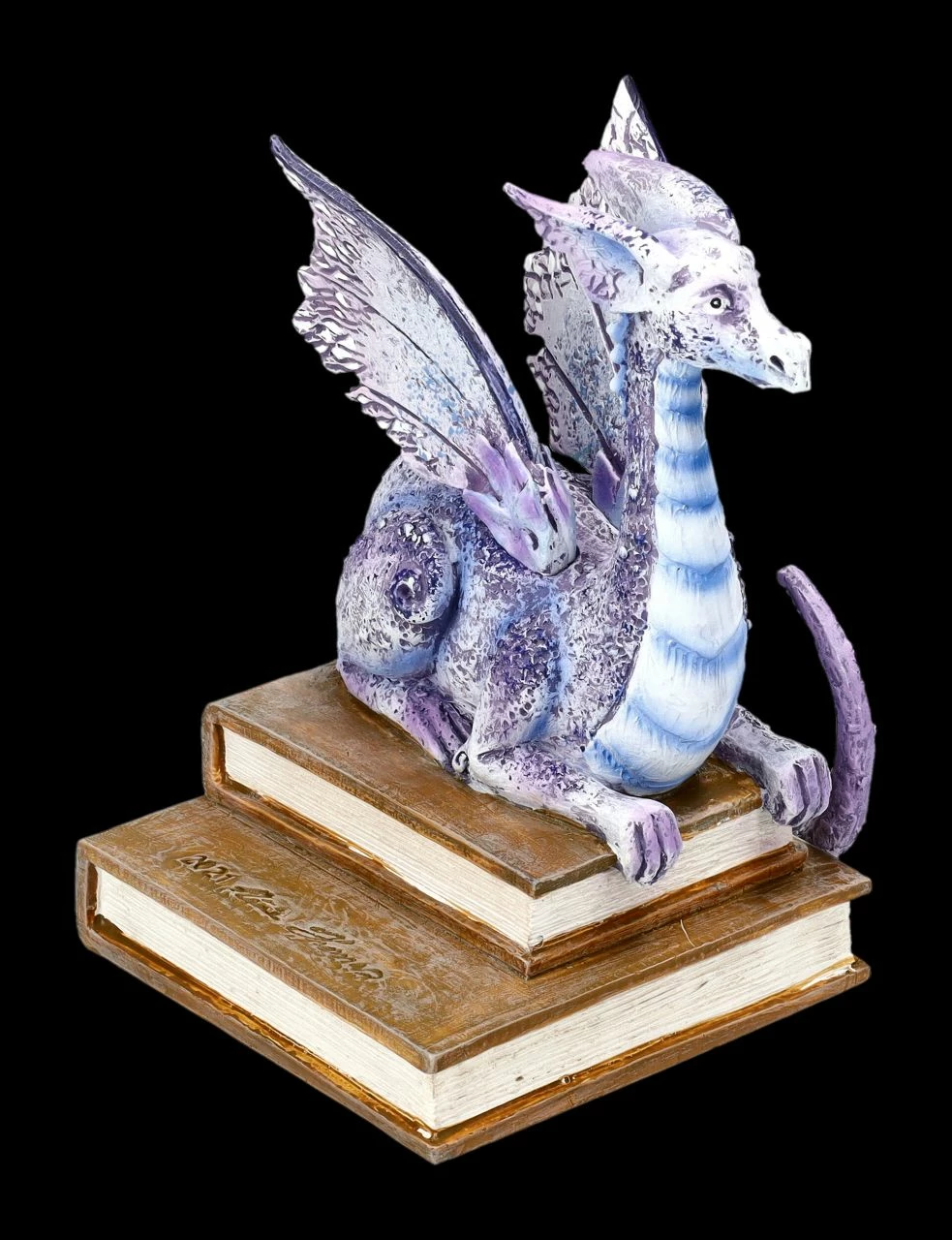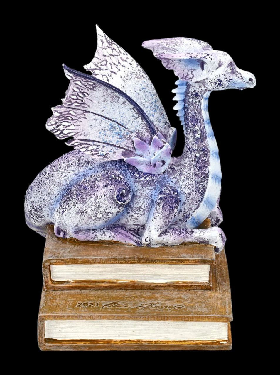 Bereits als Kind hat sich die amerikanische Fantasykünstlerin Amy Brown für die sagenhafte Welt der Elfen, Feen und Drachen interessiert und alle Geschichten darüber verschlungen. Später machte sie diese Welt zum Mittelpunkt ihrer kreativen Arbeit. So entstanden wunderbare Arbeiten, die der eigenen Fantasie Raum geben, wie dieser große lila Drache, der auf den Büchern sitzt.und sie mit den Krallen festhält. Sammler werden von der Drachen-Figur ‚Story Timy‘ von Amy Brown begeistert sein. Der Drache nach einem Artwork von Amy Brown wurde aus hochwertigem Kunststein (Polyresin) gegossen und liebevoll von Hand bemalt. Die Figur ist 12 cm hoch, 9 cm breit und 9,5 cm tief. Die Flügel sind zum Stecken. Ein perfektes Geschenk für Sammler der Arbeiten von Amy Brown und für alle, die wie sie von der Welt der Elfen, Feen und Drachen fasziniert sind.
