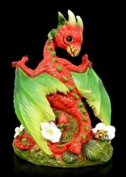 Der Erdbeerdrache Strawberry liebt es, sich zwischen saftig roten Erdbeeren zu verstecken. Der Künstler Stanley Morrison schuf den erdbeerroten Drachen mit grünen Flügeln aus handbemaltem Kunststein (Polyresin). So ein niedlicher Drache lädt zum Sammeln ein!