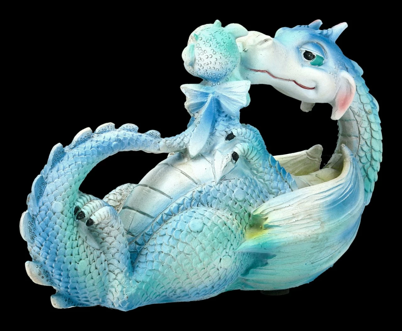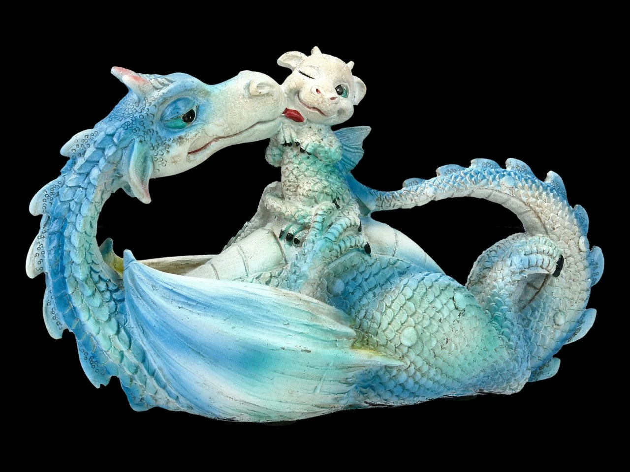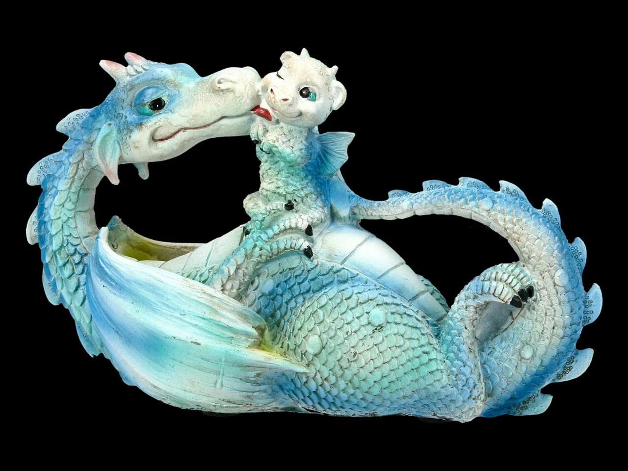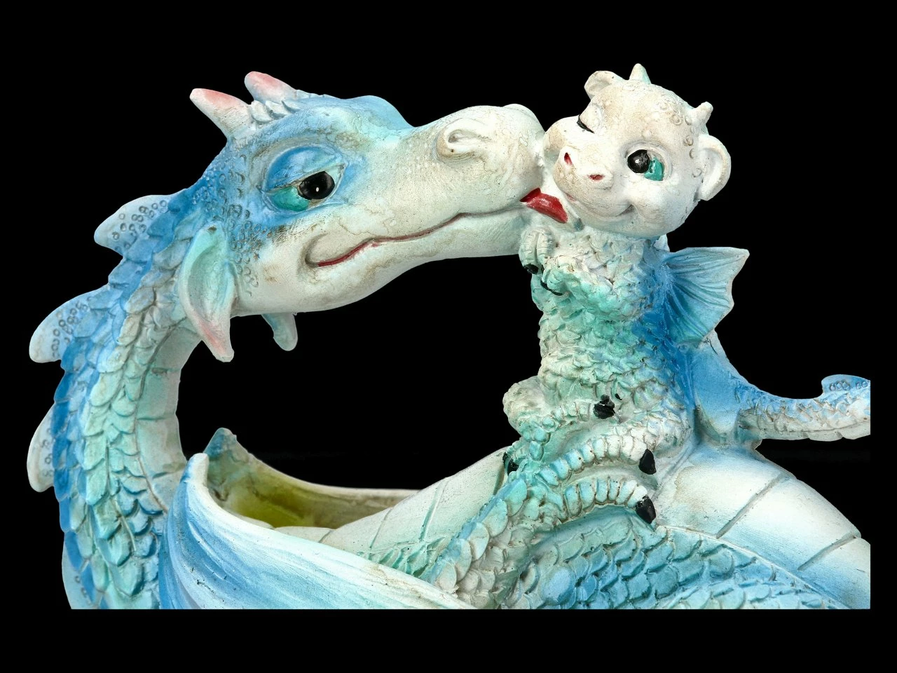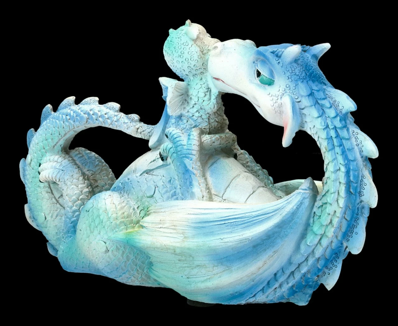 Ist das nicht süß – zärtlich säubert die Drachenmutter ihr frisch geschlüpftes Baby. Sweetest Moment – die Drachenmutter mit ihrem Baby ist in schönen Blautönen aus liebevoll handbemaltem Kunststein (Polyresin) gefertigt. Die Drachenfigur ist 12 cm hoch, 20 cm breit und 8,5 cm tief und nicht nur für Drachenfreunde, sondern auch für alle Mamas ein wunderbares Geschenk.