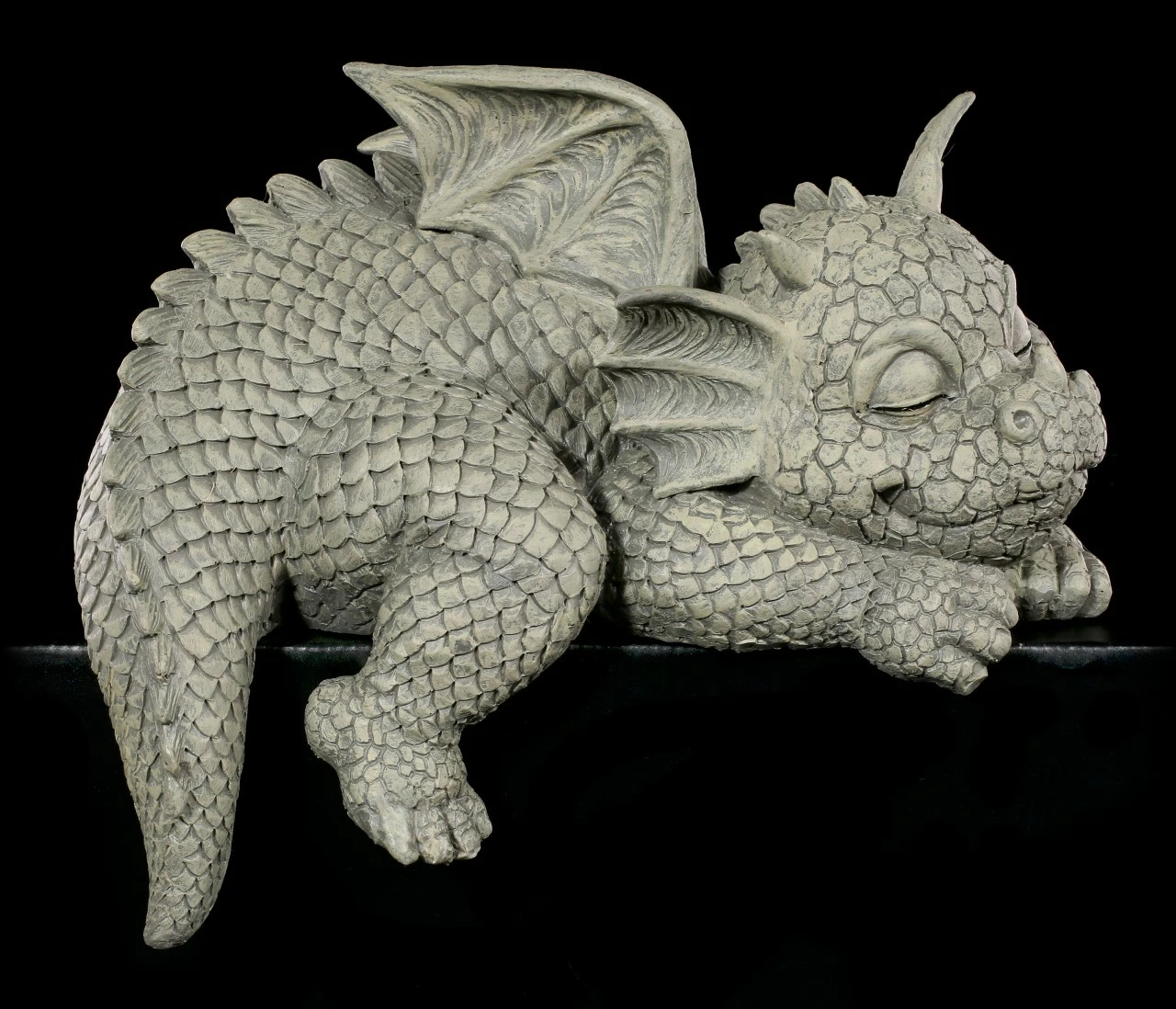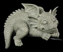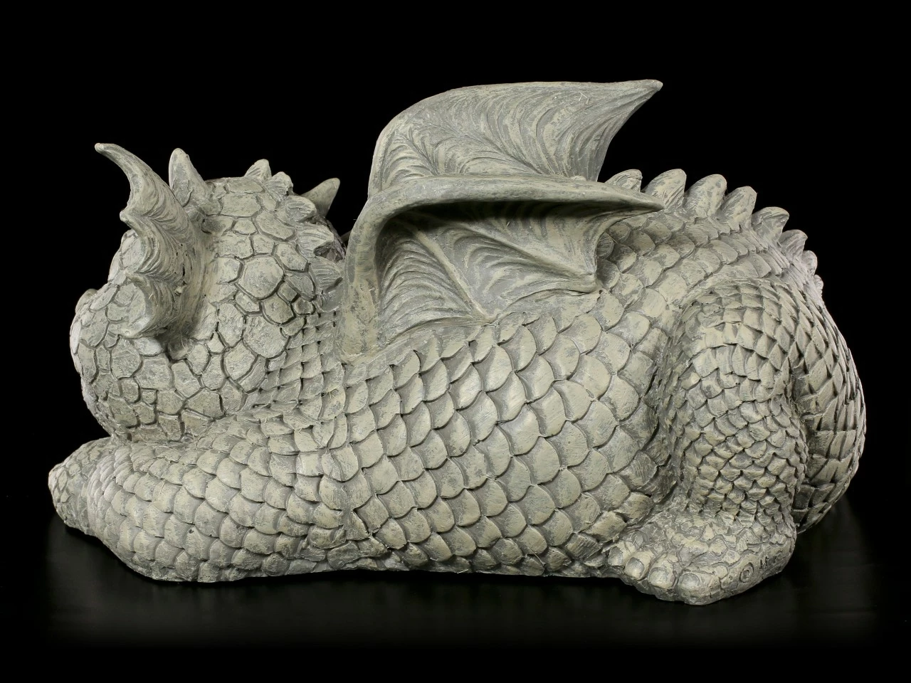 Genüsslich ruht sich der niedliche Gartendrache aus und freut sich über die Siesta in der frischen Luft. Die lustige Gartenfigur aus handbemaltem Kunststein (Polyresin) wird als Kantenhocker auf einer Fensterbank oder auf einem Zaun zu einem liebevollen Blickpunkt.