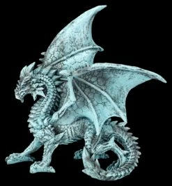 Magisch wie ein prächtiger chinesischer Drache wirkt dieser herrliche Eisdrache. Die eisblaue, detailreiche Drachenfigur ist aus handbemaltem Kunststein (Polyresin). Sie ist 20,5 cm hoch, 22 cm breit und 10,5 cm tief. Dieser fantastische blaue Eisdrache ist nicht nur sehr dekorativ, er ist auch ein perfektes Geschenk für alle Drachenfreunde