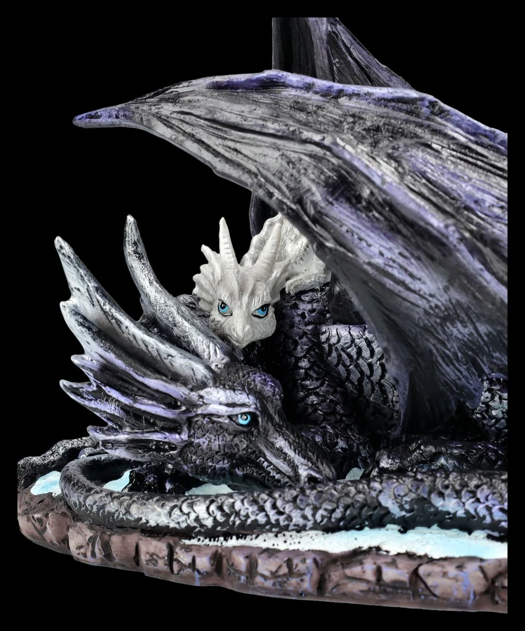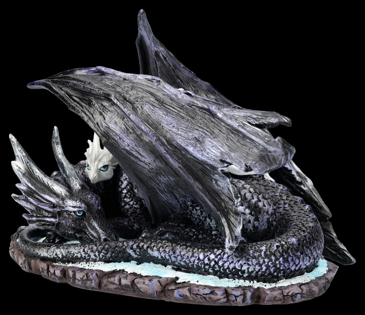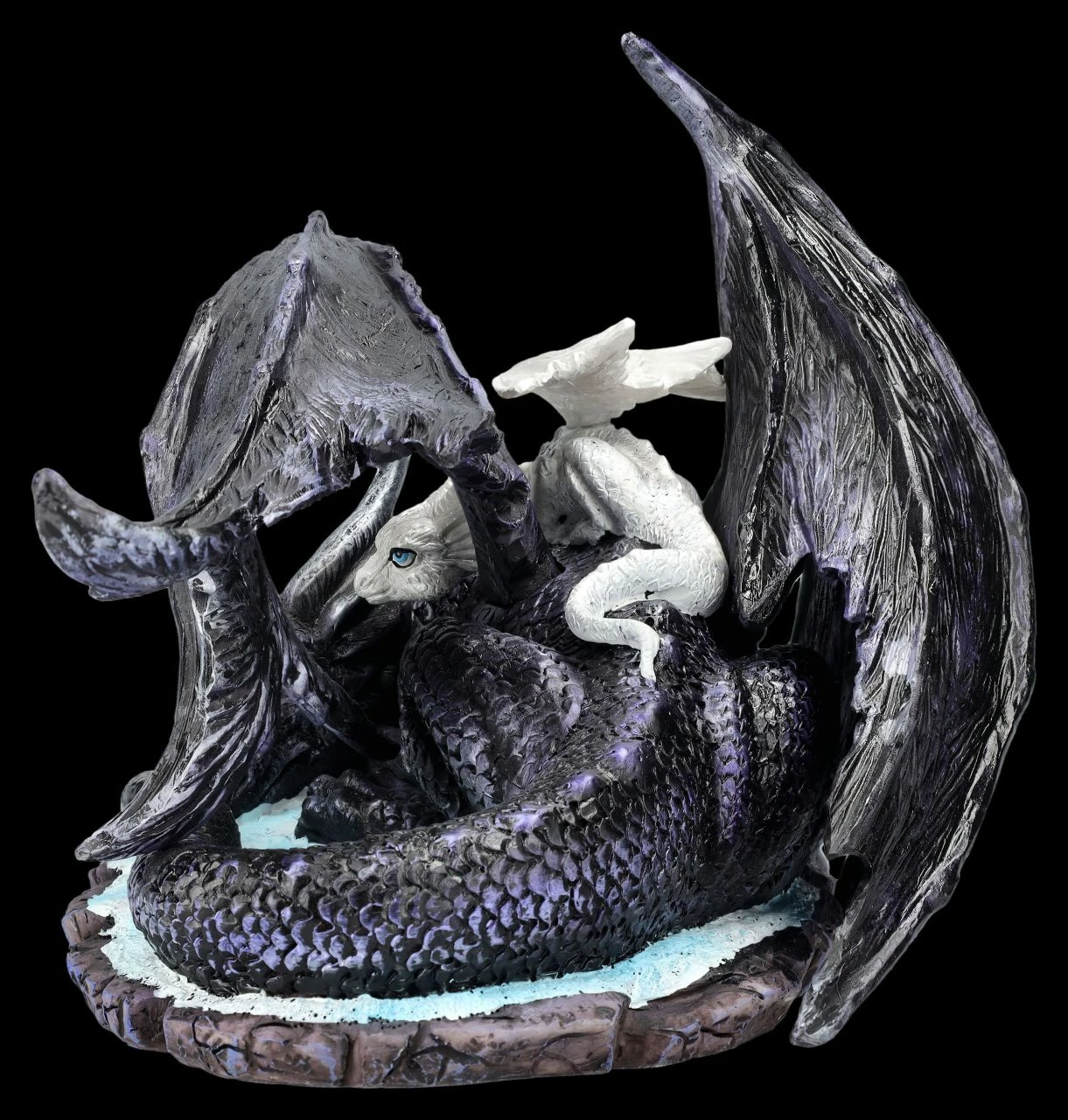 Selbst im entfernten, sagenhaften Land der Drachen, Elfen und Feen sind weiße Drachen äußerst selten. Also ist es kein Wunder, dass der kleine weiße Drache unter den Flügeln seiner Mutter Schutz sucht. Zärtlich beschützend breitet die Drachenmutter ihre großen Flügel aus, damit sich kein Neugieriger ungefragt dem Nachwuchs nähert. Die 13 cm hohe, 19 cm breite und 13,5 cm tiefe zauberhafte von Hand bemalte Drachenfigur mit dem schwarzen Drachen und seinem weißen Jungen ist detailreich aus Kunststein (Polyresin) gefertigt. Für alle Drachen-Freunde, aber auch für alle Mütter, ist ‚Mothers Sanctuary‘ ein liebevolles Geschenk.