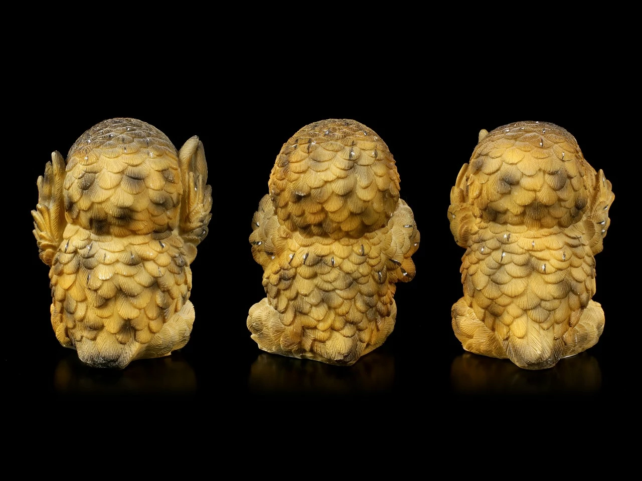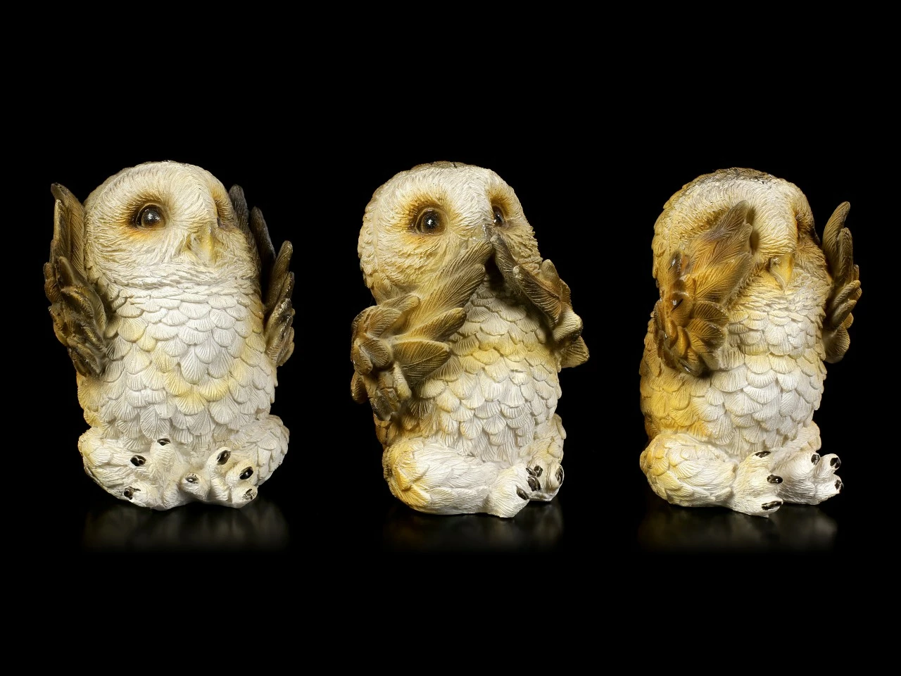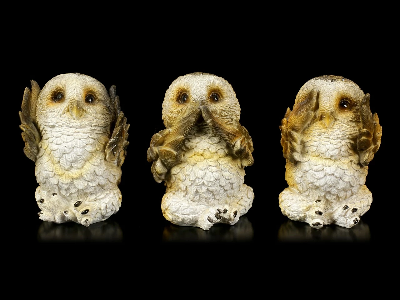Dass Eulen als weise gelten, ist allgemein bekannt. Hier demonstrieren sie das allerdings ganz deutlich: Nichts Böses hören, sehen und schon gar nicht sagen, das ist die Devise. Das witzige Eulen-Set ist aus detailreich handbemaltem Kunststein (Polyresin) gefertigt. Die drei 7,5 – 8 cm hohen, 5 – 6 cm breiten und je 5 cm tiefen lustigen kleinen Eulen sind icht nur für Eulen Fans ein tolles Geschenk.