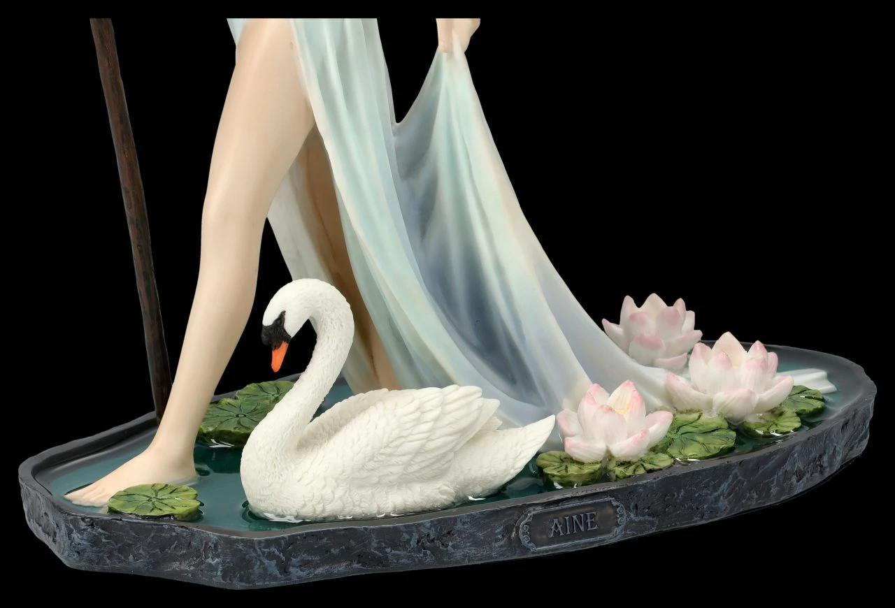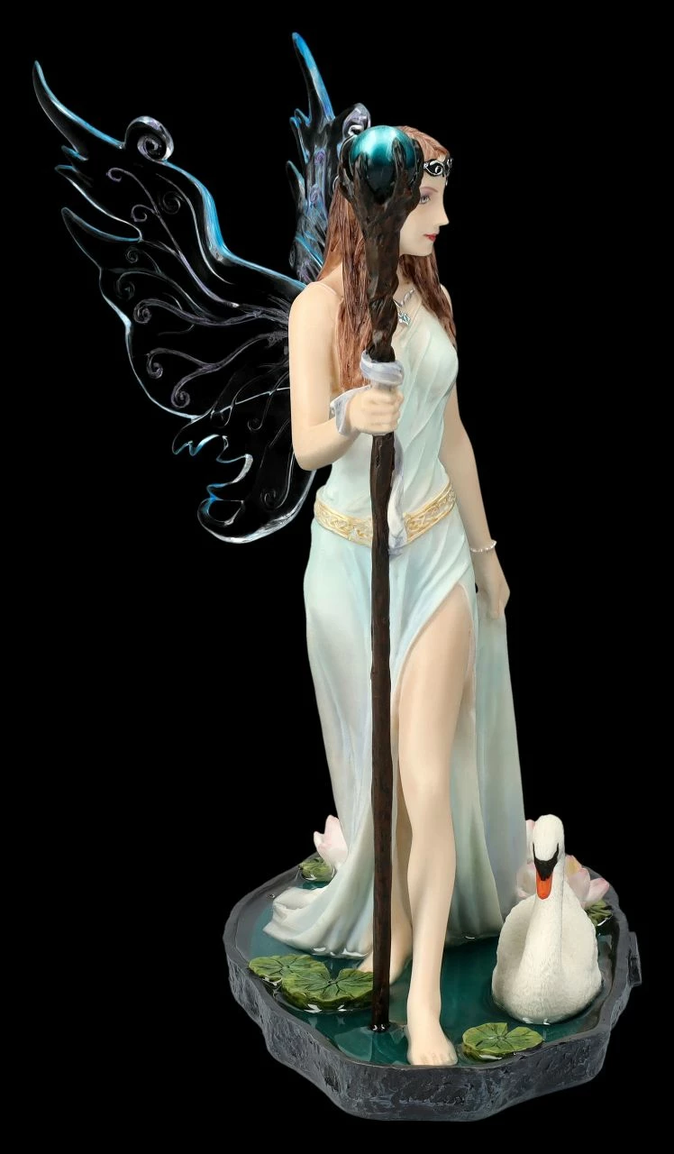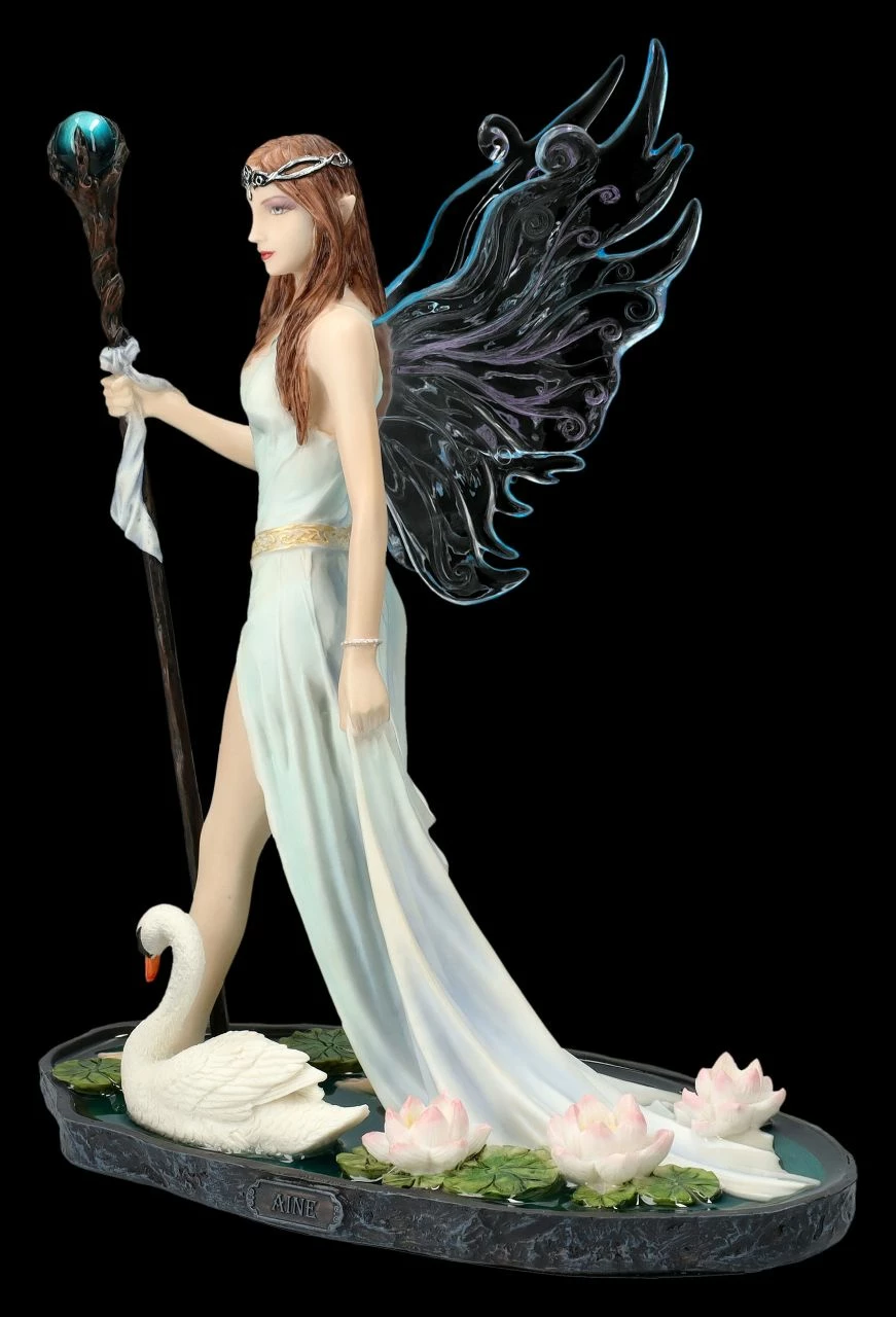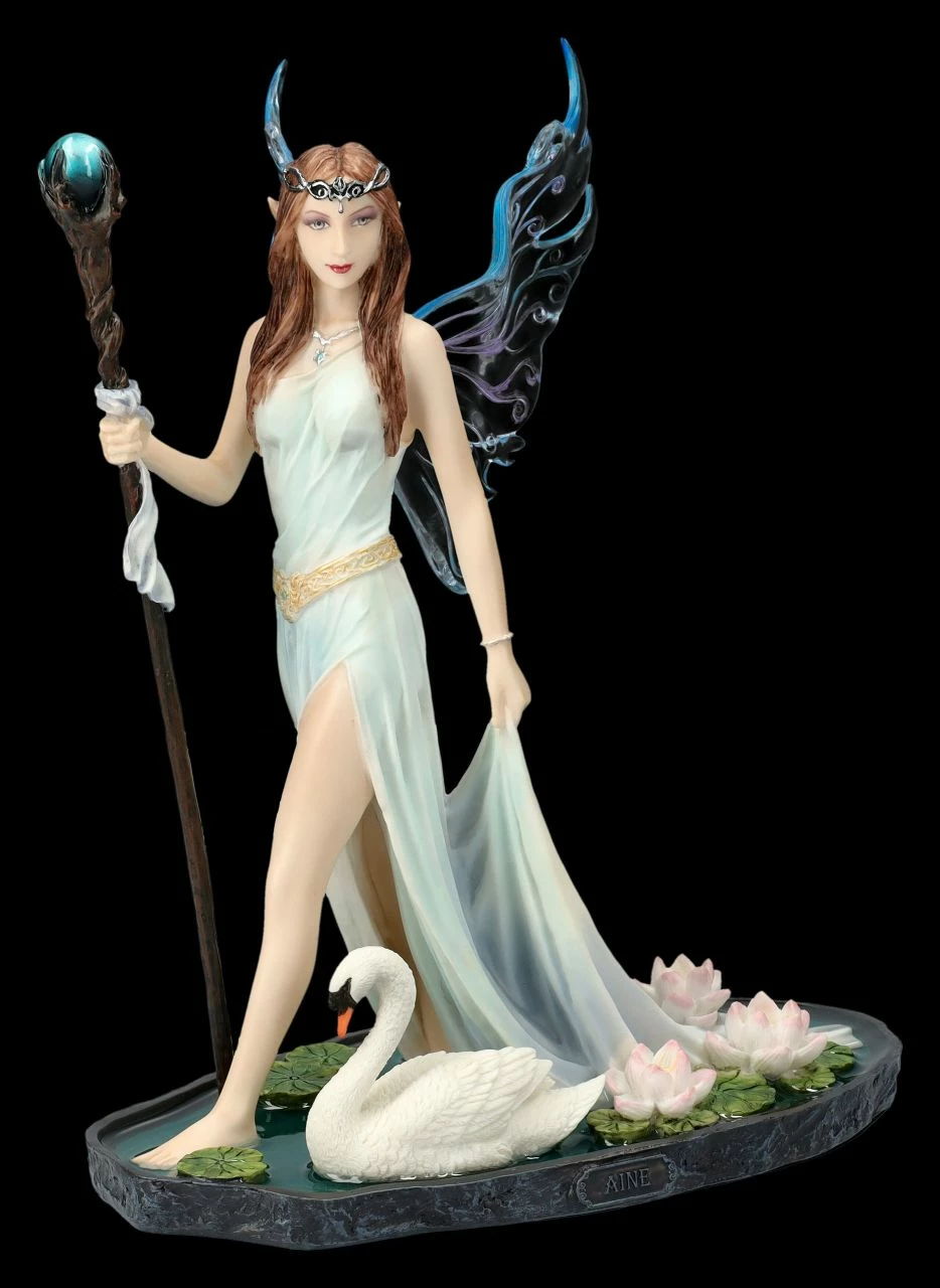 Kunstvolle Darstellung einer Elfenwelt: Aine mit Zauberstab und Schwan