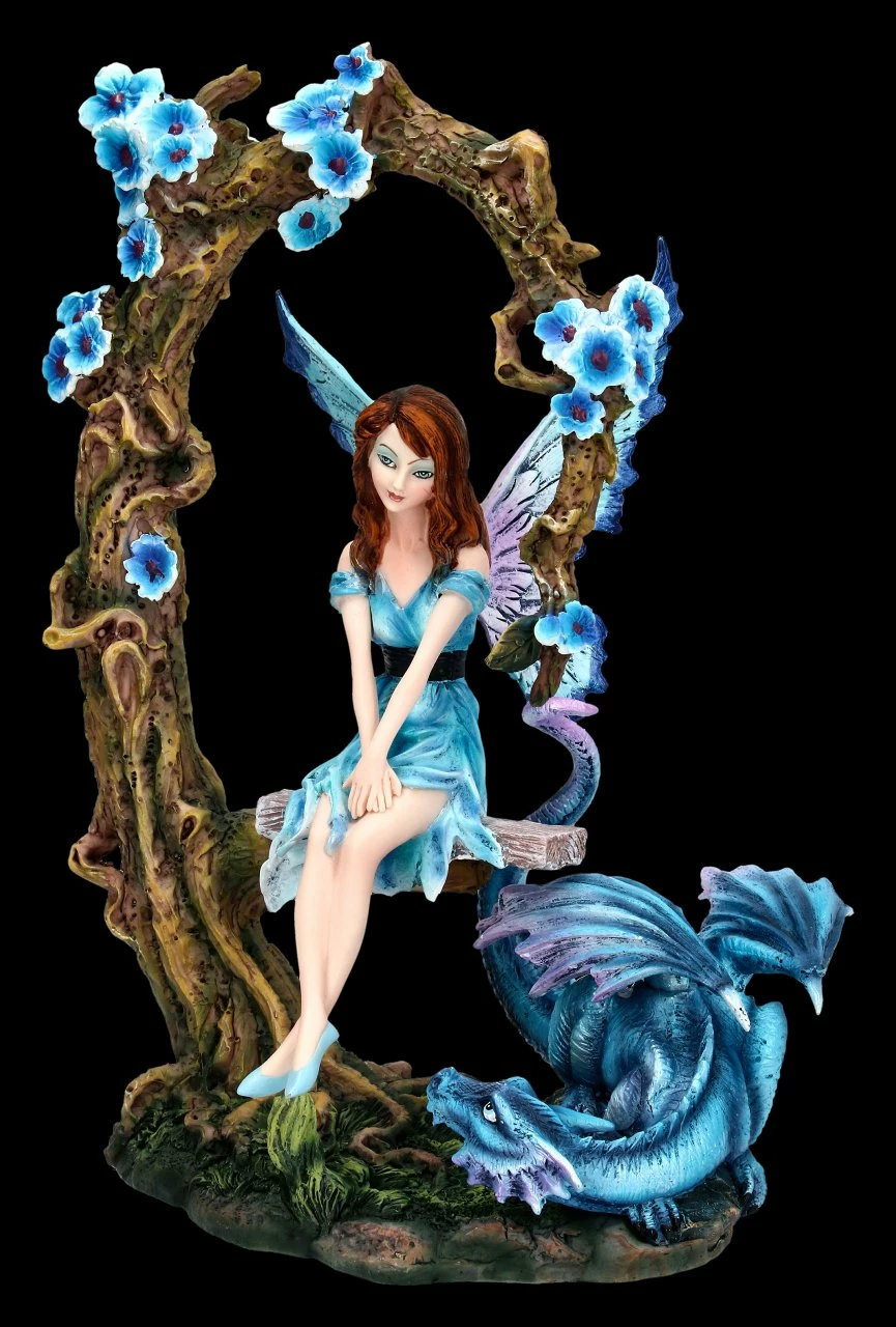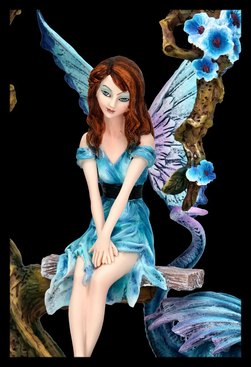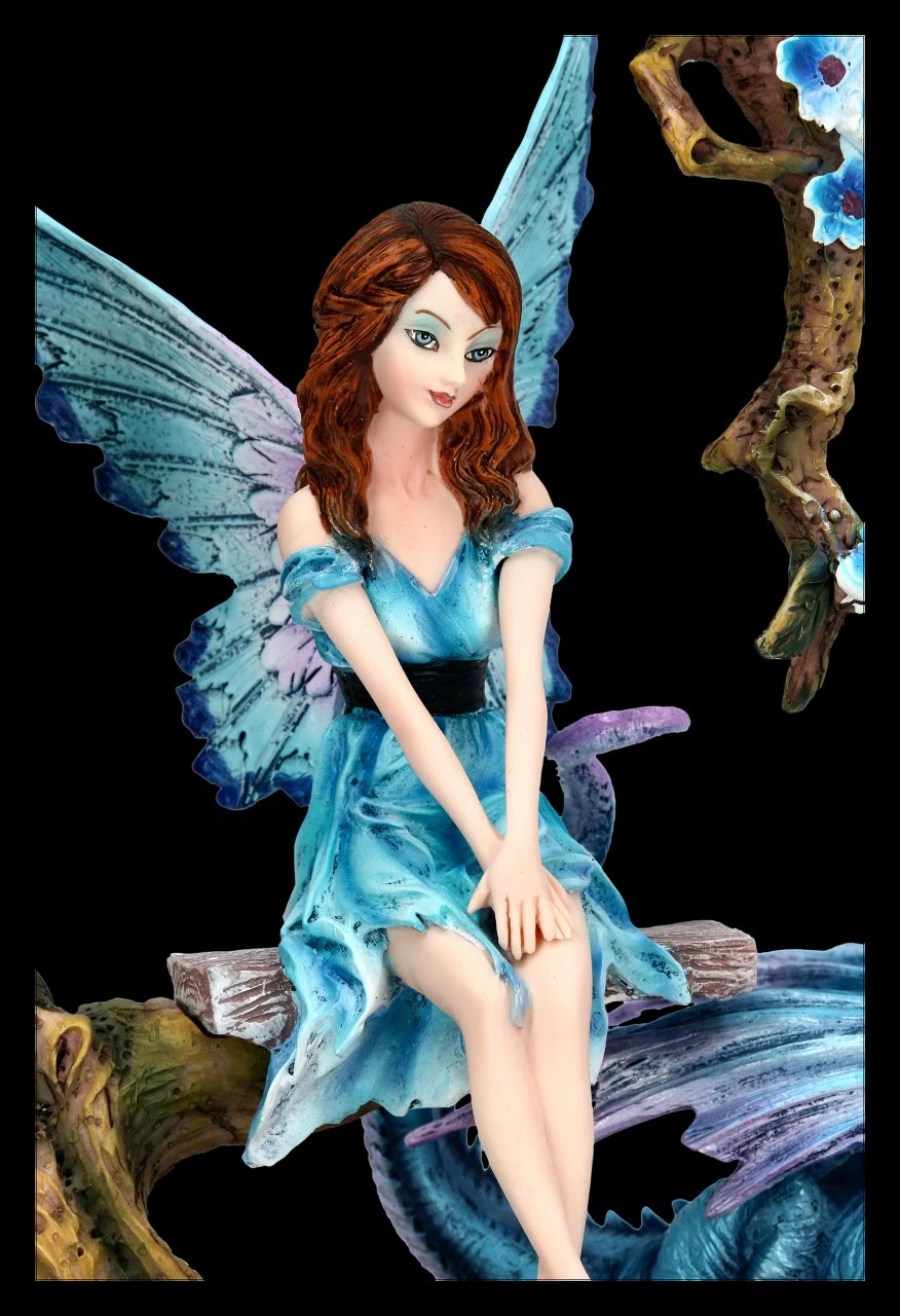 Wunderschöne blaue Elfenfigur mit Drache