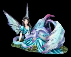 Wer dieser wunderschönen Elfe beim Spaziergang im Wald begegnet, wird erst mal an eine exotische Blüte denken, bevor sein Blick auf das Geweih fällt, das die Elfe als Kopfputz trägt. Die Fantasy-Künstlerin Amy Brown sagt von sich selbst: „Ich hoffe, Bilder zu schaffen, die andere zum Schaffen inspirieren, Menschen glücklich machen und allgemein ihre Stimmung aufhellen“.Und weiter sagt sie, dass wir alle an ein wenig Magie glauben sollen, auch wenn es nur für kurze Zeit ist. Und jeder kann seine Fantasie spielen lassen, wenn er diese mystisch schöne Elfe mit den großen und filigranen, farblich zu ihrem schönen Kleid passenden Schmetterlingsflügeln erblickt. Die fantasievolle Elfen-Figur von Amy Brown mit den vielen Details und den tollen Farben wurde aus liebevoll handbemaltem Kunststein (Polyresin) geschaffen. Mit der Höhe von 31,5 cm, der Breite von 18 cm und der Tiefe von 13 cm wird diese schöne Elfe überall ihre Bewunderer finden. Für alle Elfen-Sammler und alle, die von wunderschönen Fabelwesen angetan sind, ist die Bloom Fairy von Amy Brown ein perfektes Geschenk. Die schönen großen Flügel sind zum Stecken.