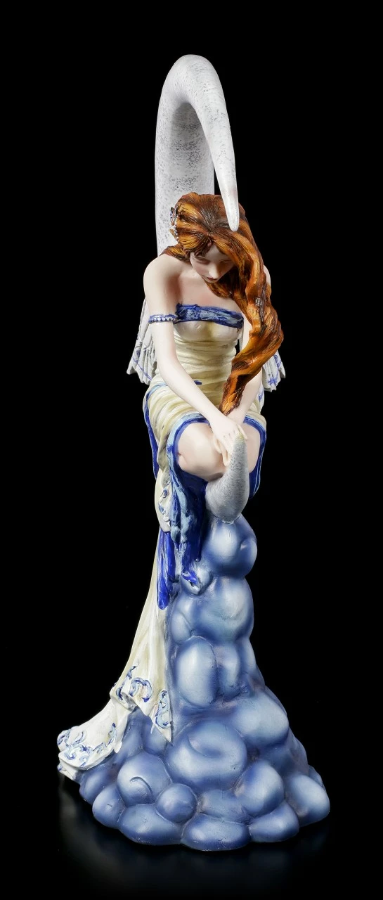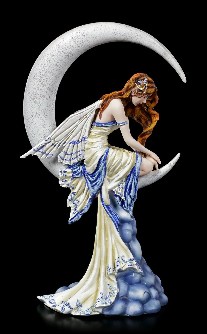 Die zierliche Elfe hat es sich auf dem Halbmond bequem gemacht und ist ganz in Gedanken versunken. Das Kleid der wunderschönen Elfe ist in zarten gelben und blauen Tönen gehalten. Die Elfe Memory der Künstlerin Nene Thomas wurde aus fein handbemaltem Kunststein (Polyresin) gestaltet und wird in einer Geschenkverpackung geliefert. Sie ist ein tolles Präsent für einen Sammler.