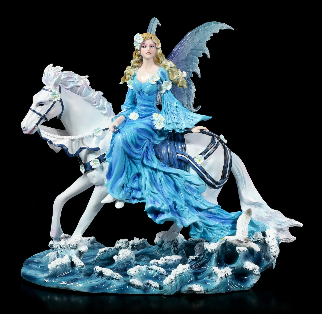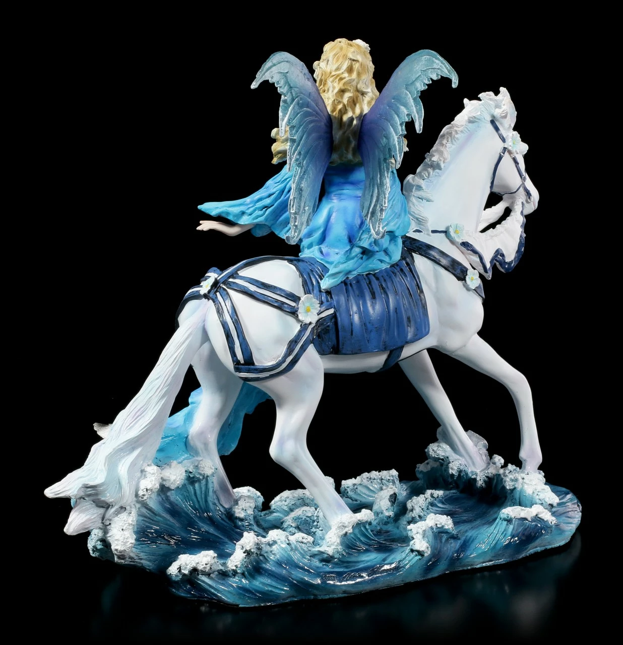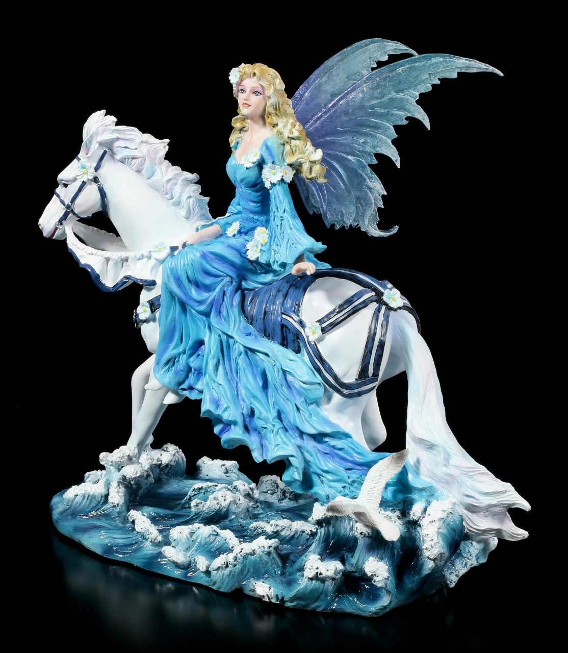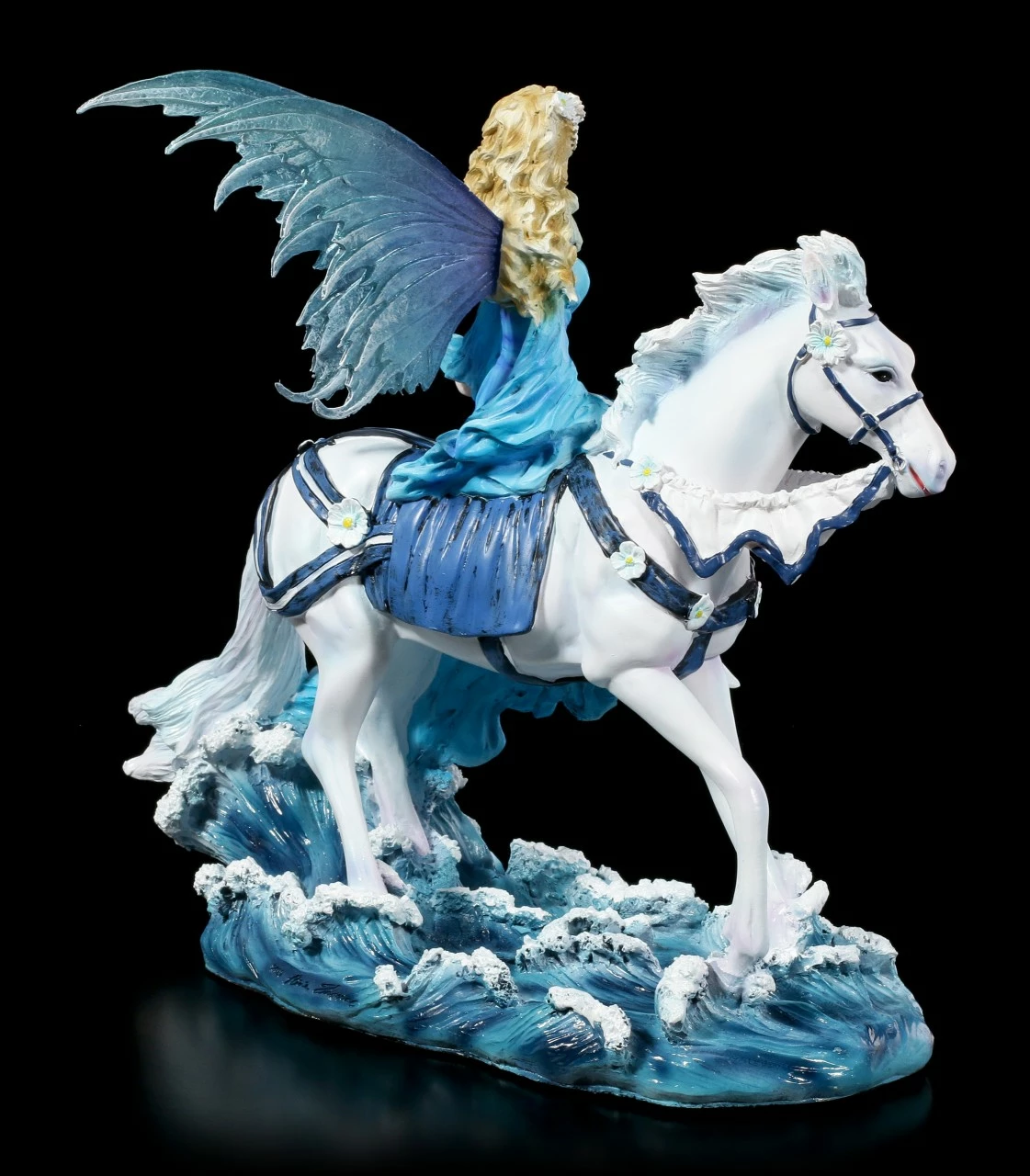 Euphoria von Nene Thomas ist einfach nur beeindruckend. Das umwerfendes blaue Kleid der Elfe bauscht sich im Wind. Der wilde Ritt auf ihrem Lieblingspferd führt sie sogar über das rauschende Meer. Die handbemalte Kunststein Figur sollte in keiner Sammlung fehlen. Sehen Sie sich nur die vielen kleinen Details an.