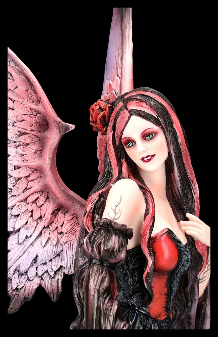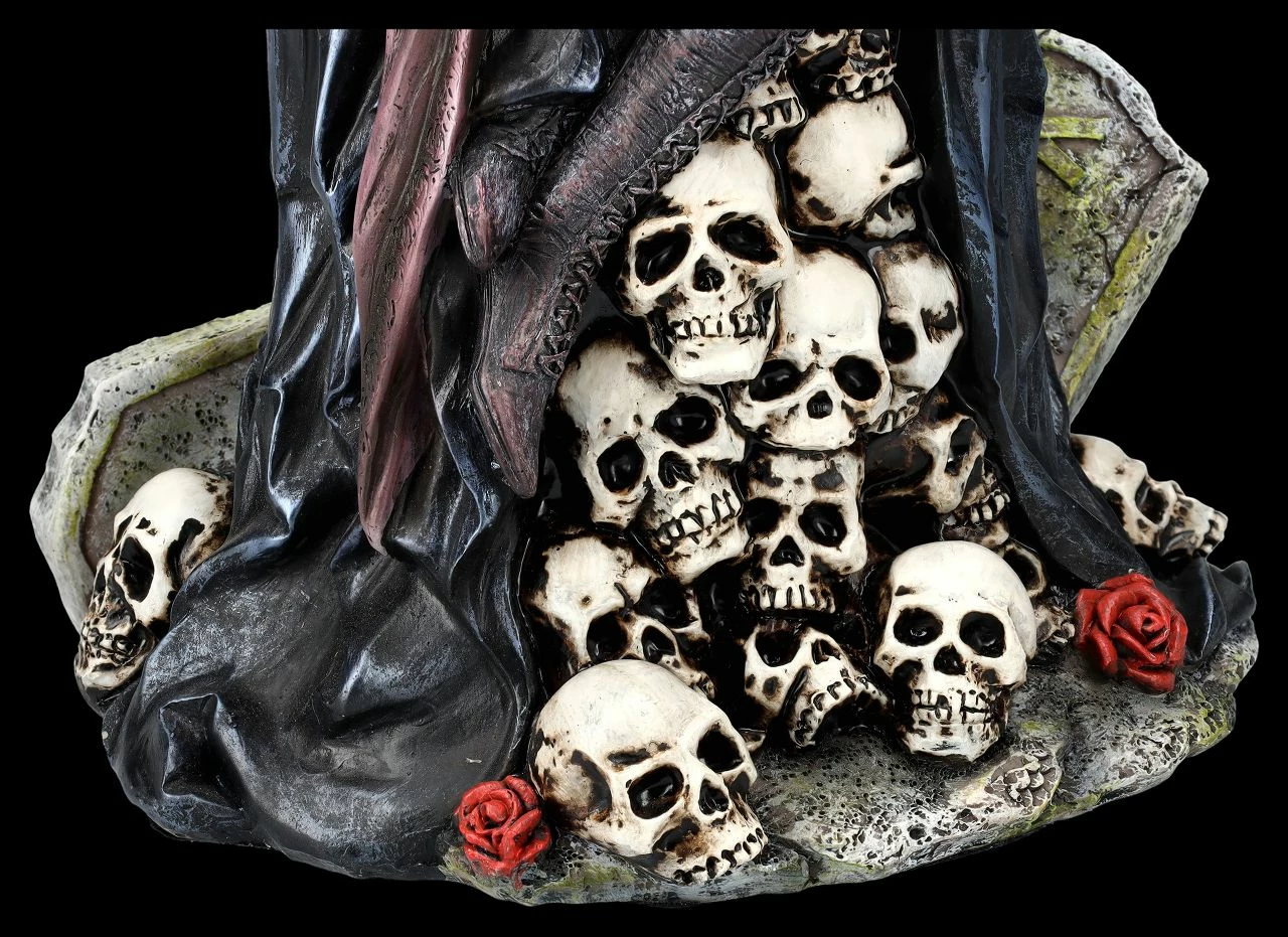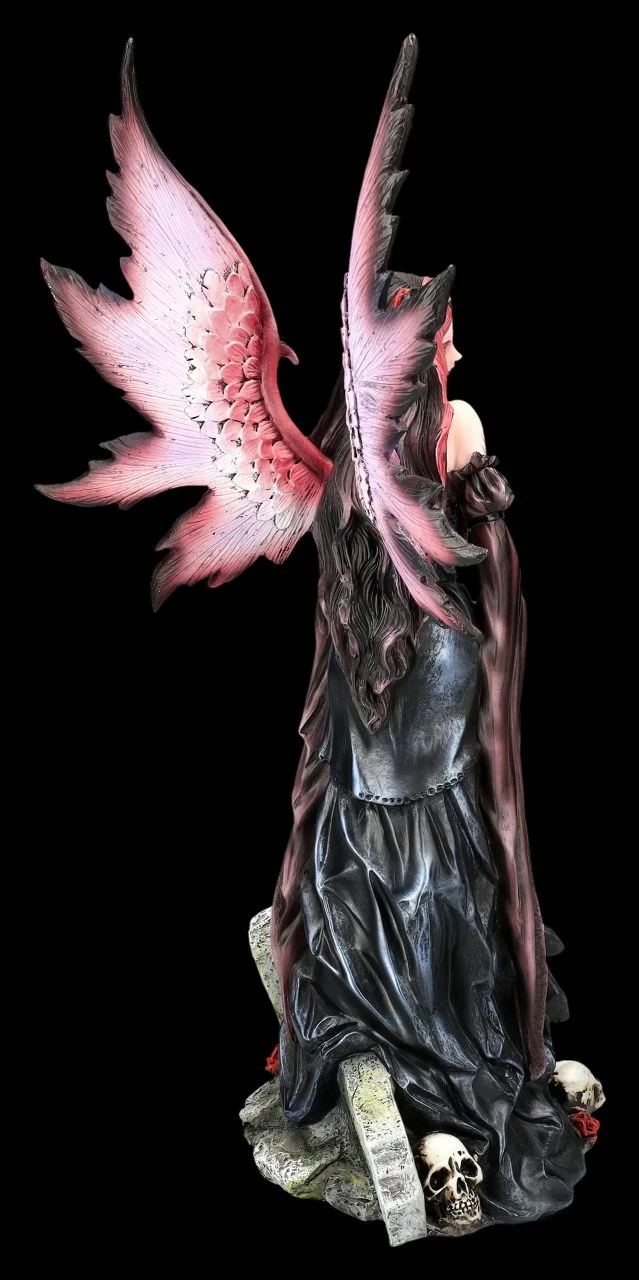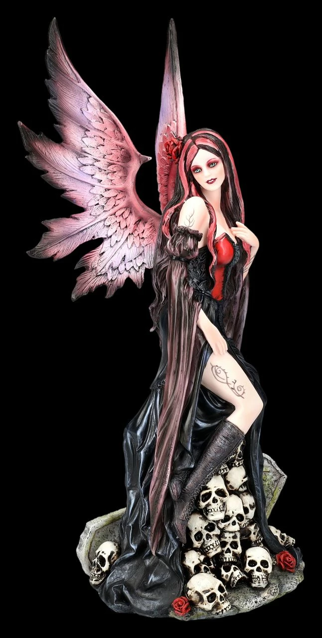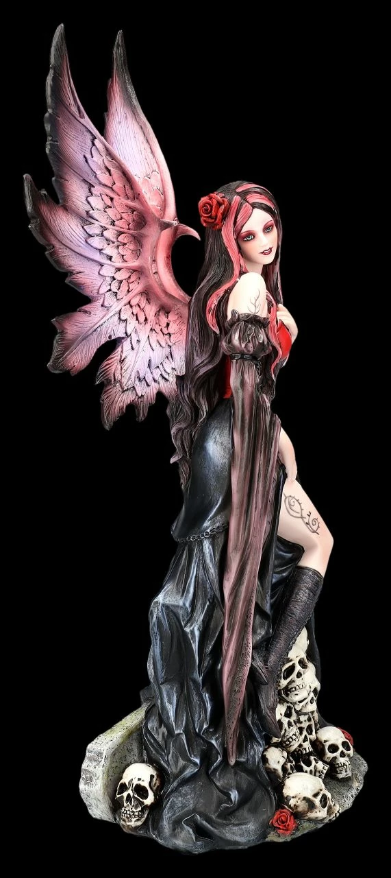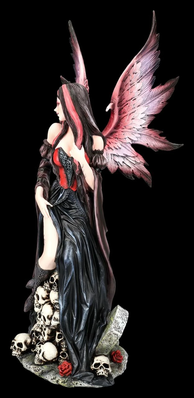 Finsterer Charme umhüllt diese Gothic Elfenfigur mit Totenköpfen