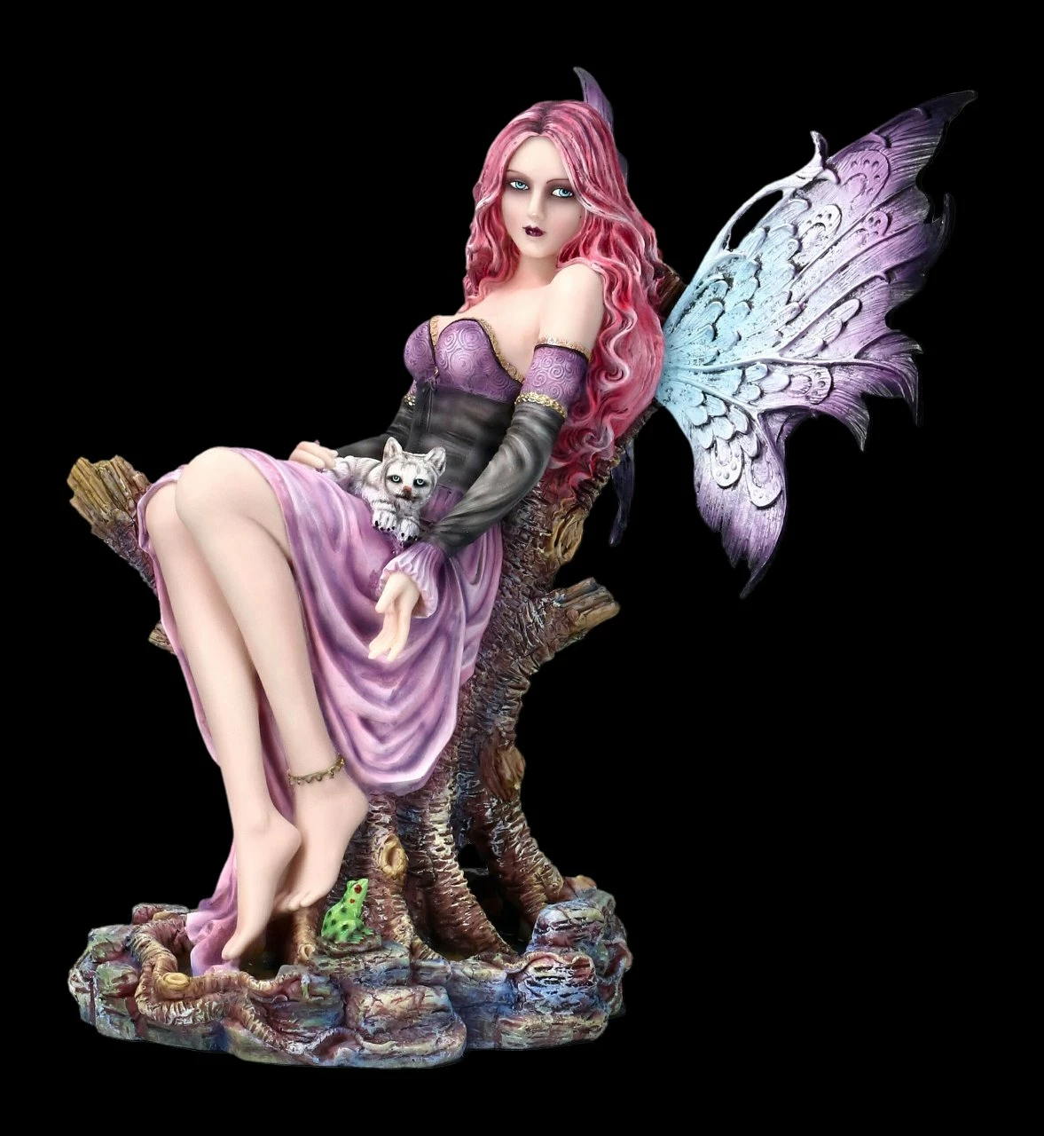 Paola, die rothaarige Elfen Schönheit hat ein Haustier von ihrem Liebsten bekommen. Nun macht sie den ersten Ausflug, um dem kleinen Tiger all ihren Freunden und Freundinnen zu zeigen. Das weiße Tiger Baby Marie hat gleich Vertrauen gefasst und sich auf dem Schoß von Paola bequem gemacht. Die umwerfende, 36,5 cm hohe, 36 cm breite und 36 cm tiefe Elfen Figur aus Kunststein (Polyresin) ist detailreich und liebevoll handbemalt und beeindruckt durch ihre Schönheit. Die herrlichen Flügel sind zum Stecken.