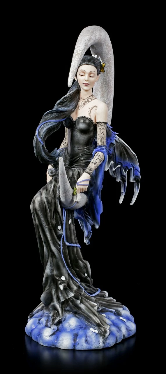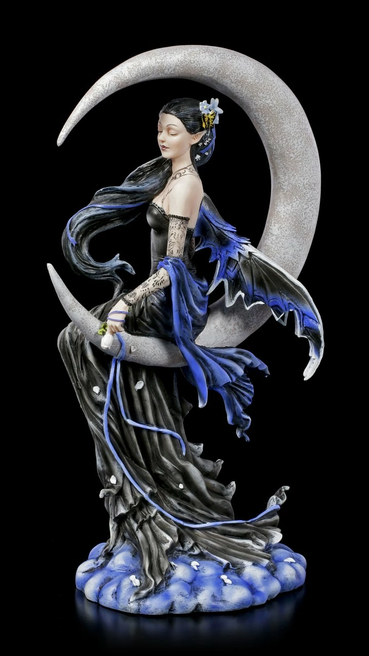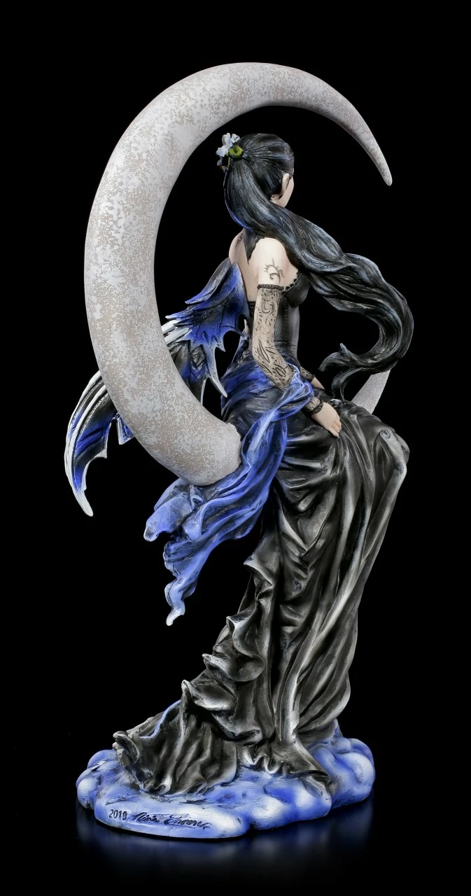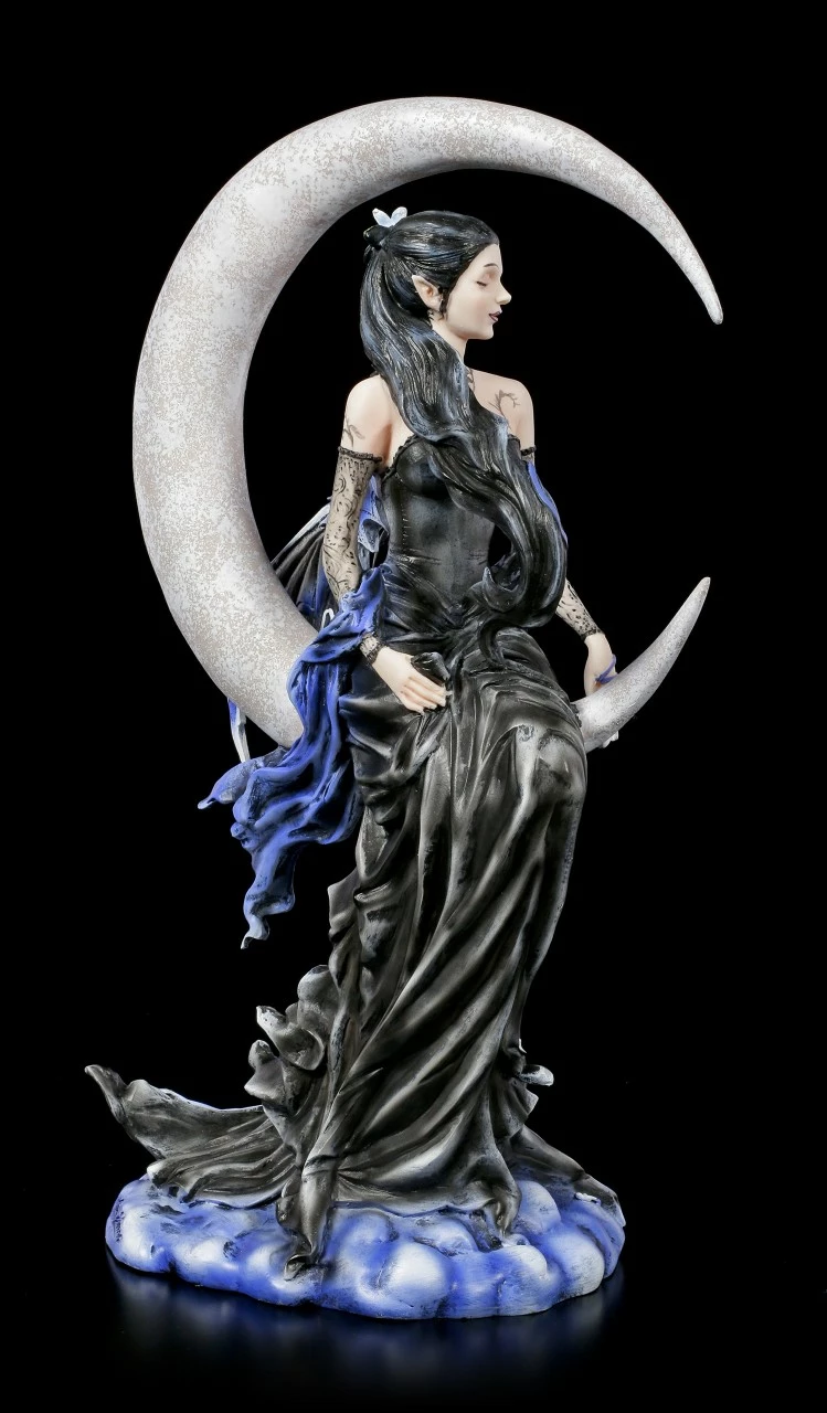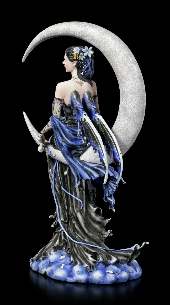 In eleganter Haltung sitzt die schöne Elfe Solace Elfe auf dem Halbmond und schaut andächtig in die Ferne. Es sieht aus, als würde sie auf ihren Liebsten warten, der sie zu einem Moonlight-.Ball abholt. Das Kleid von Solace ist wie der Nachthimmel mit Sternen designt und die schönen, detailreichen Flügel können mit einer Magnethalterung befestigt werden. Die wunderschöne Elfe von Nene Thomas aus fein handbemaltem Kunststein (Polyresin) wird in einer Geschenkverpackung geliefert und ist ein tolles Geschenk an einen Sammler.