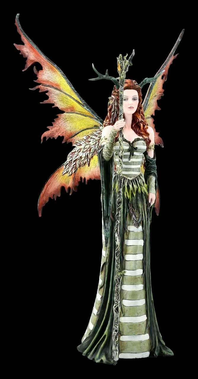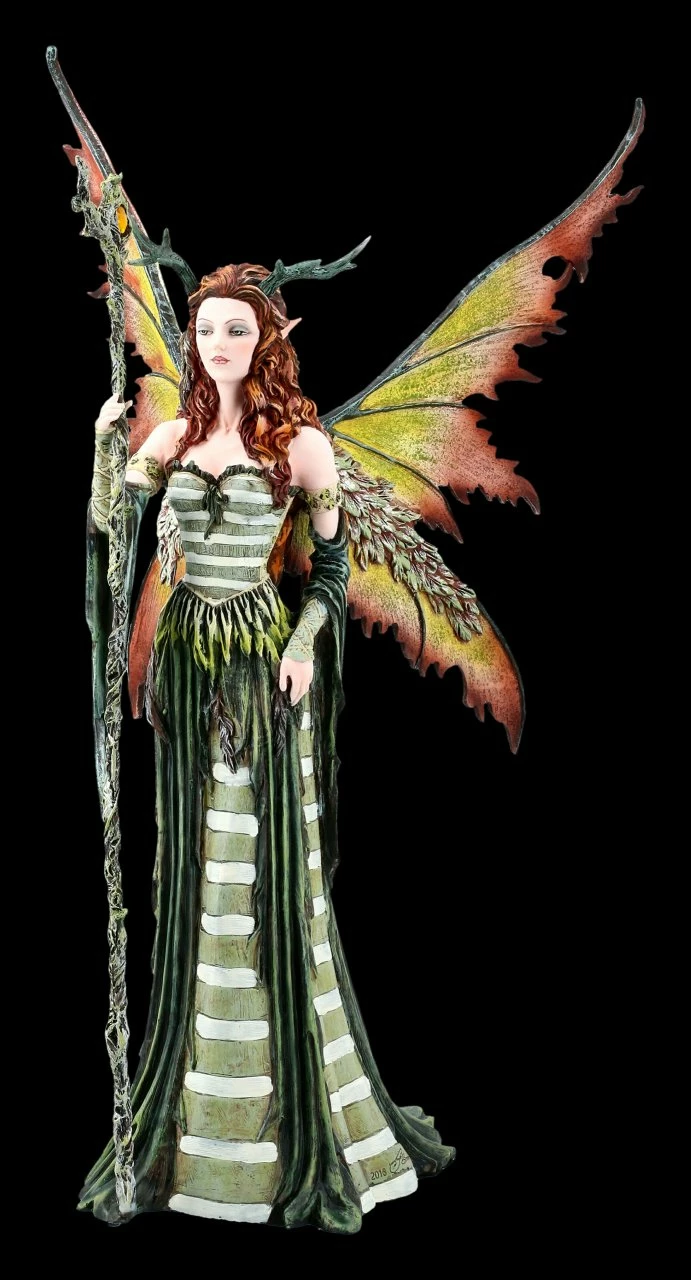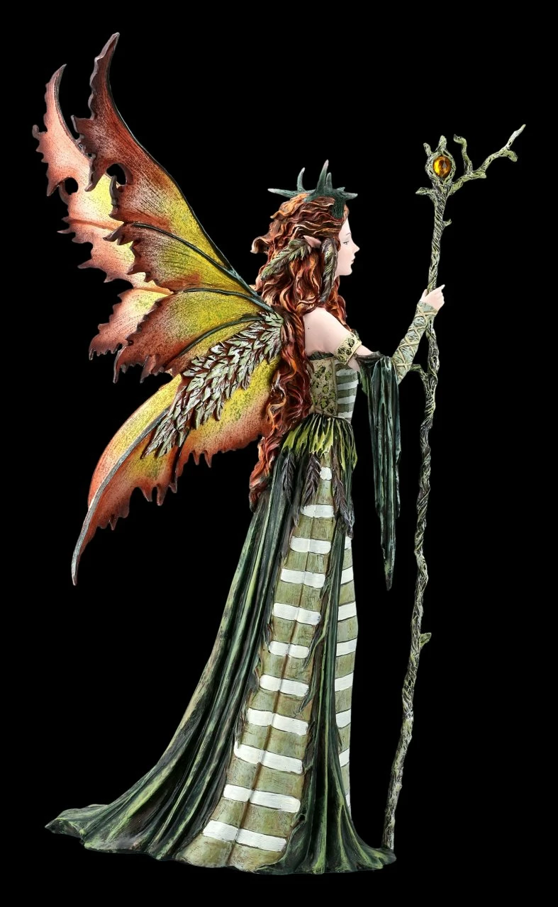 Die wunderschöne Waldelfe der Fantasykünstlerin Amy Brown wird Sie als Sammler begeistern. Die in Grüntönen gehaltene Elfe trägt den passenden Titel ‚The Green Women‘. Dass sie zu den großen Magierinnen gehört, beweist ihr Zauberstab. Im Wald mag sich diese magische Elfe gut tarnen können, bei Ihnen wird die beeindruckende, 50 cm hohe, 27 cm breite und 28 cm tiefe Elfe jedoch zum sofortigen Blickfang. Die liebevoll handbemalte Elfen-Figur aus Kunststein (Polyresin) ist ein wundervolles Geschenk für einen lieben Menschen der die Natur liebt und mit grünem Daumen gesegnet ist.