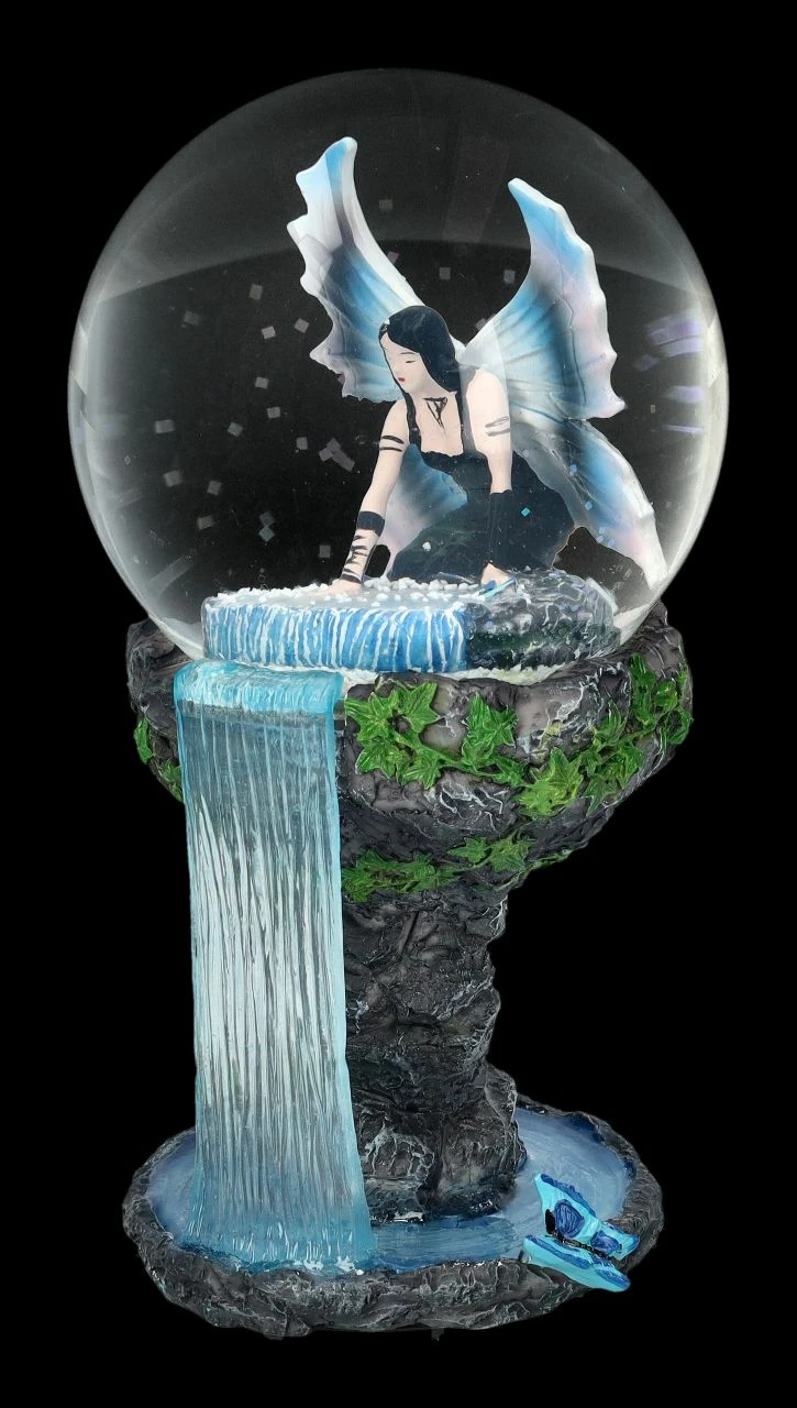 Die umwerfende Schneekugel Immortal Flight aus Kunststein (Polyresin) und Glas von Anne Stokes wird jeden Beschenkten begeistern. Die Elfe sitzt vor einer Quelle und lässt ihrer Magie freien Lauf. Die einzigartige Schneekugel zieht jeden Blick auf sich. Das Quellwasser scheint aus der Luftblase heraus zu fließen und zu einem Wasserfall zu werden. Am Fuße der Quelle sitzen ein paar Vögel und nutzen den kleinen See zum Reinigen des Gefieders.