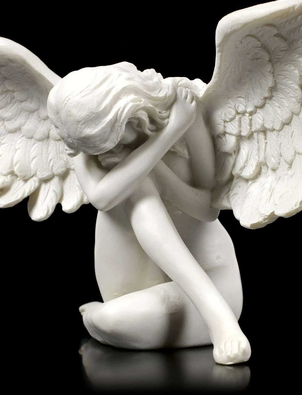 Weiße Engelfigur mit weit gespreitzten Schwingen