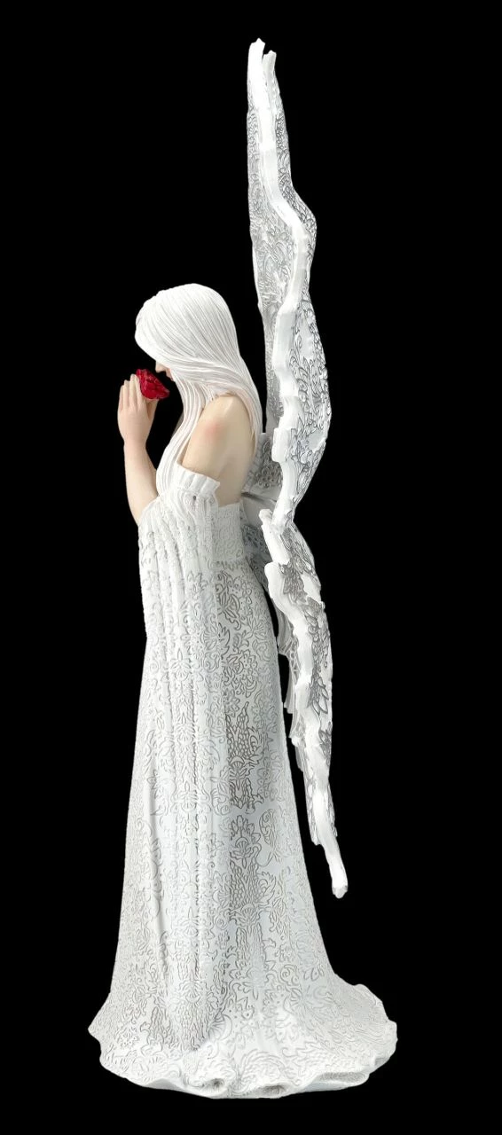 ‚Only Love Remains‘ nennt die berühmte Künstlerin Anne Stokes ihren wunderschönen weißen Engel, der sich trauernd über die rote Rose in seinen Händen beugt. Doch Engel behüten auch schöne Erinnerungen und zeigen, dass sie mit ihrer Liebe immer für einen da sind. Der beeindruckend schöne Engel mit den großen Flügeln ist mit viel Liebe zum Detail kunstvoll gearbeitet und sehr zart von Hand bemalt. Er ist 35 cm hoch, 16,5 cm breit und 11,5 cm tief und als Zeichen der Liebe oder auch zum Trost ein wunderbares Geschenk und kommt inklusive eines schön bedruckten Geschenkkartons.