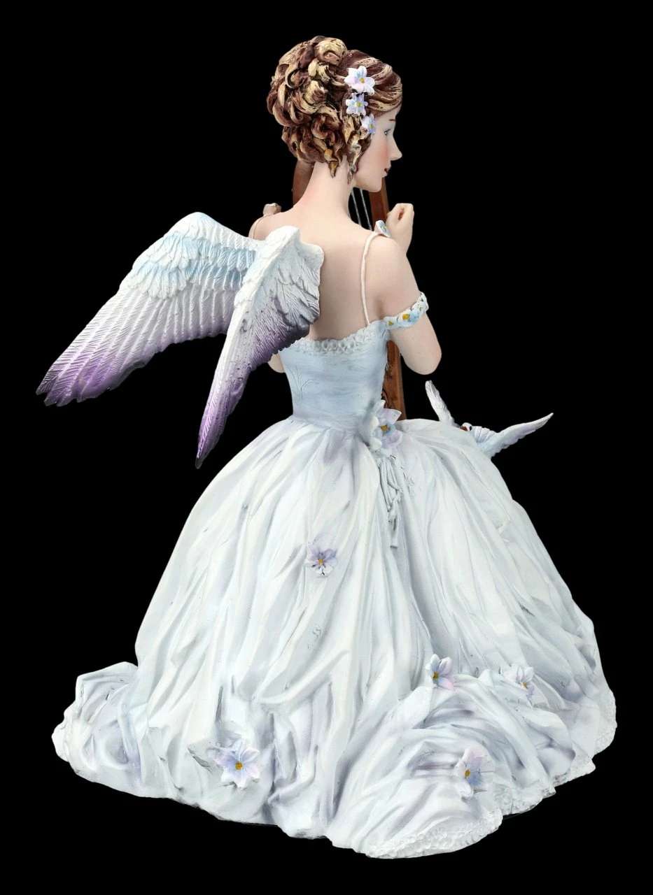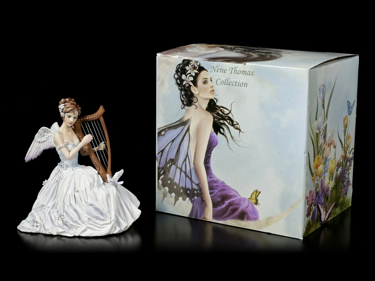 Beinahe hört man die zarten Töne, so versunken ist der wunderschöne Engel Chorus beim Spiel auf der Harfe. Alle hören ihm zu und eine Taube hat sich direkt auf den Schoß des Engels gesetzt. Der elegante, leibevoll handbemale Engel in dem aufwändigen weißen Kleid stammt aus der Künstlerwerkstatt von Nene Thomas. Die Figur ist aus hochwertigem Kunststein (Polyresin) gefertigt und wird in einer Geschenkverpackung geliefert. Sie ist ein wunderbares Geschenk an einen Sammler.und alle, die von den zarten Klängen einer Harfe begeistert sind.
