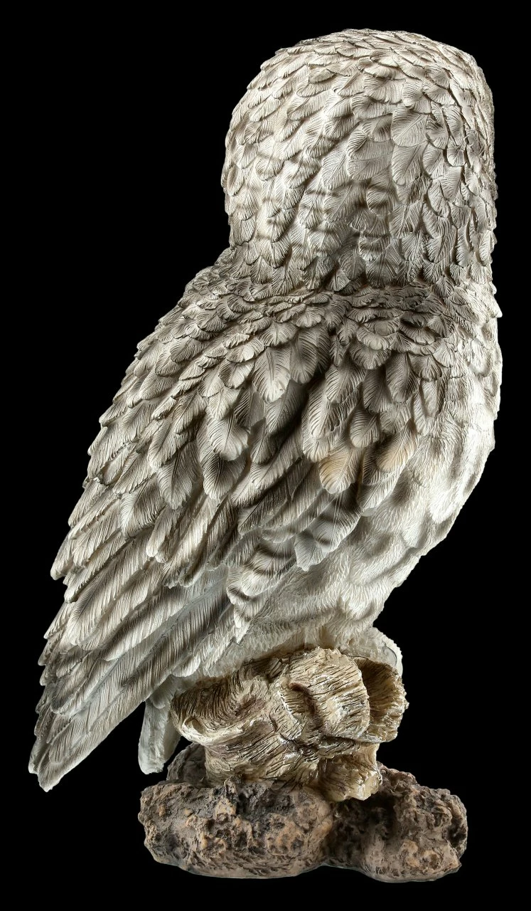 Eine wunderschöne Dekoration, die mit Sicherheit jeden Eulen Fan begeistern wird, ist dieser fantastisch natürlich aussehende, auf einem Ast sitzende Bartkauz. Man hat richtig den Eindruck, als würde er mit vorsichtigen Blicken aufmerksam jede Bewegung genauestens beobachten. Der fantastische Bartkauz mit der Höhe von 30 cm, der Breite von 15,5 cm und der Tiefe von 17,5 cm ist beeindruckend detailreich aus Kunststein (Polyresin) gefertigt und mit viel Liebe zum Detail von Hand bemalt. Ob auf der Fensterbank oder dem Sideboard, er sollte auf jeden Fall da Platz finden, wo er von jedem Besucher bewundert werden kann.