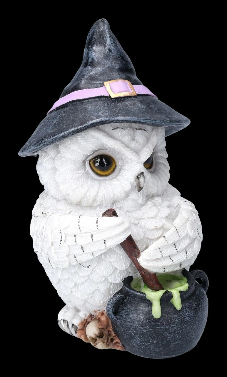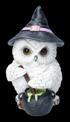 Jetzt stellt sich heraus, was die Eule bei ihrer Hexe gelernt hat… Äußerst konzentriert rührt die weiße Eule in der grünen Flüssigkeit im Hexenkessel. Was da wohl dabei herauskommt? Die unternehmungslustige, 18 cm hohe, 10,5 cm breite und 11,5 cm tiefe Eule aus Kunststein (Polyresin) wurde liebevoll handbemalt. Sie ist eine lustige Deko nicht nur für den Hexenhaushalt, sondern auch für alle Eulenfreunde.