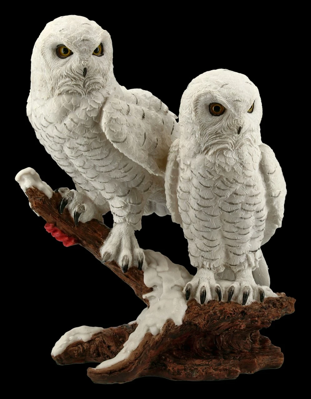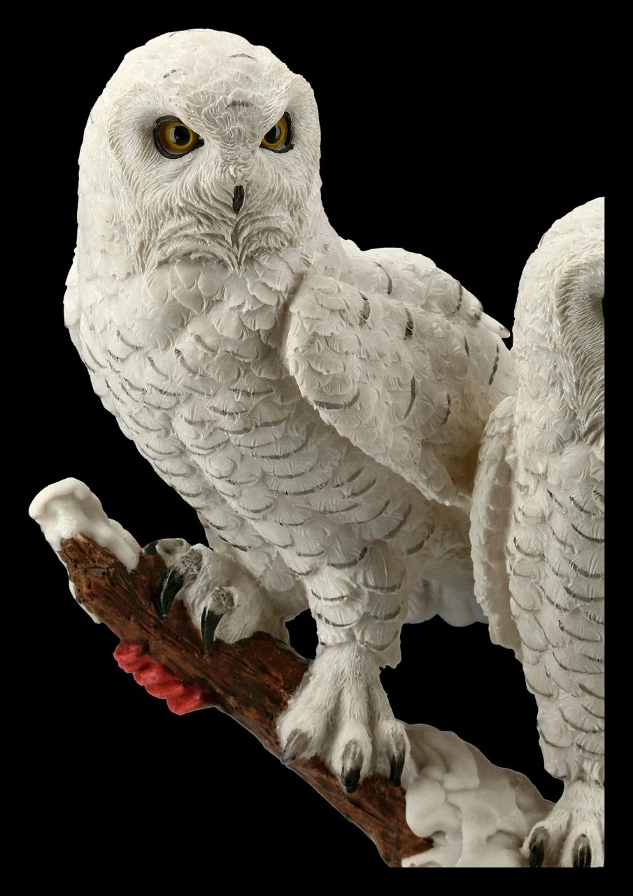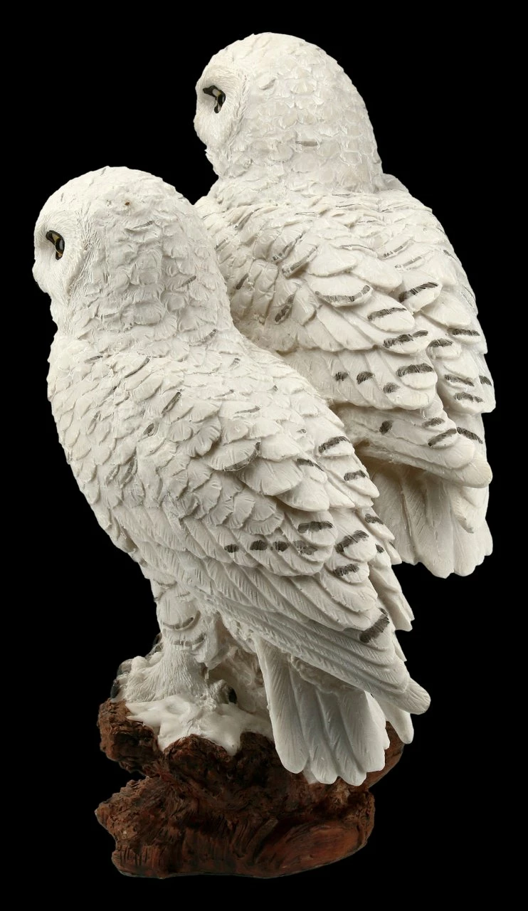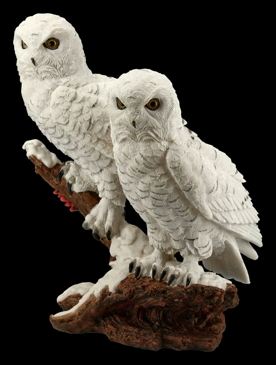 Jeder Betrachter wird sich völlig beeindruckt diesem fantastischen Schneeeulen Paar auf dem Ast nähern. Dieses wunderschöne Schneeeulen Paar, das so unglaublich natürlich aussieht, ist eine märchenhaft schöne Dekoration und ein wundervoller Blickfang. Die außerordentlich detailreich aus Kunststein (Polyresin) gefertigten Schneeeulen sind mit viel Liebe zum Detail von Hand bemalt. Mit der Höhe von 32 cm, der Breite von 24,5 cm und der Tiefe von 19 cm werden sie jeden Ihrer Besucher in Erstaunen versetzen.