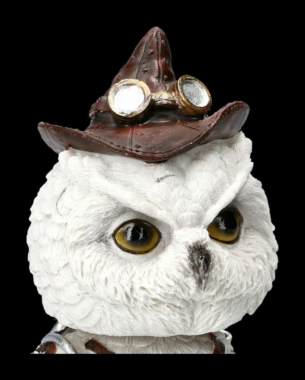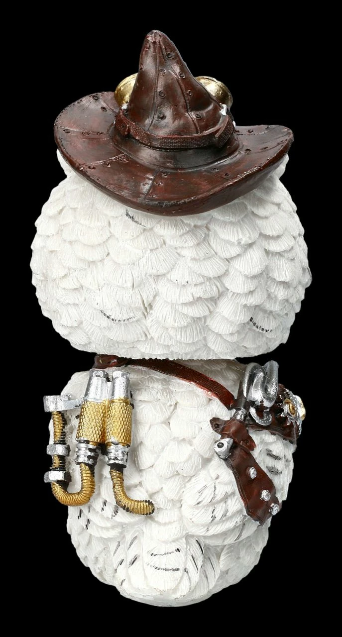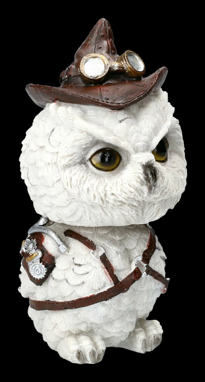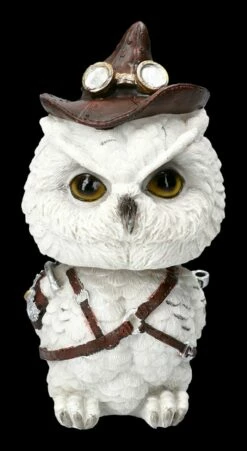 Dass Eulen als weise gelten, hat sich schon herumgesprochen. Also werden alle interessierten Waldbewohner nach dem Ruf der Schneeeule zusammen kommen, um dem gefiederten Erfinder bei seinem Vortrag zu lauschen. Die lustige Eule im Steampunk Look ist aus handbemaltem Kunststein (Polyresin) gefertigt und mit der Höhe von 16 cm, der Breite von 8 cm und der Tiefe von 9 cm eine tolle Deko für den Schreibtisch. Feathered Inventor ist aber auch ein witziges Geschenk für alle werdenden Erfinder.