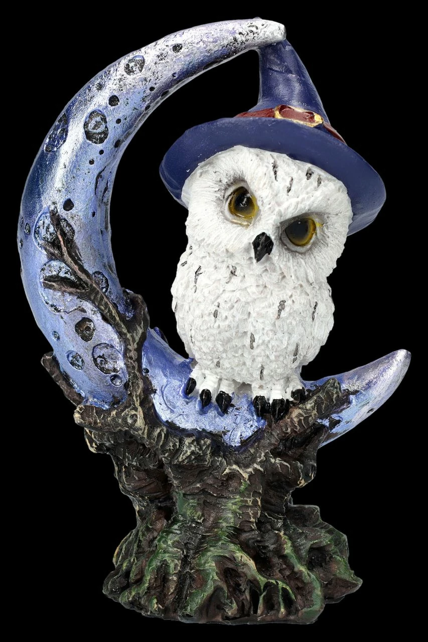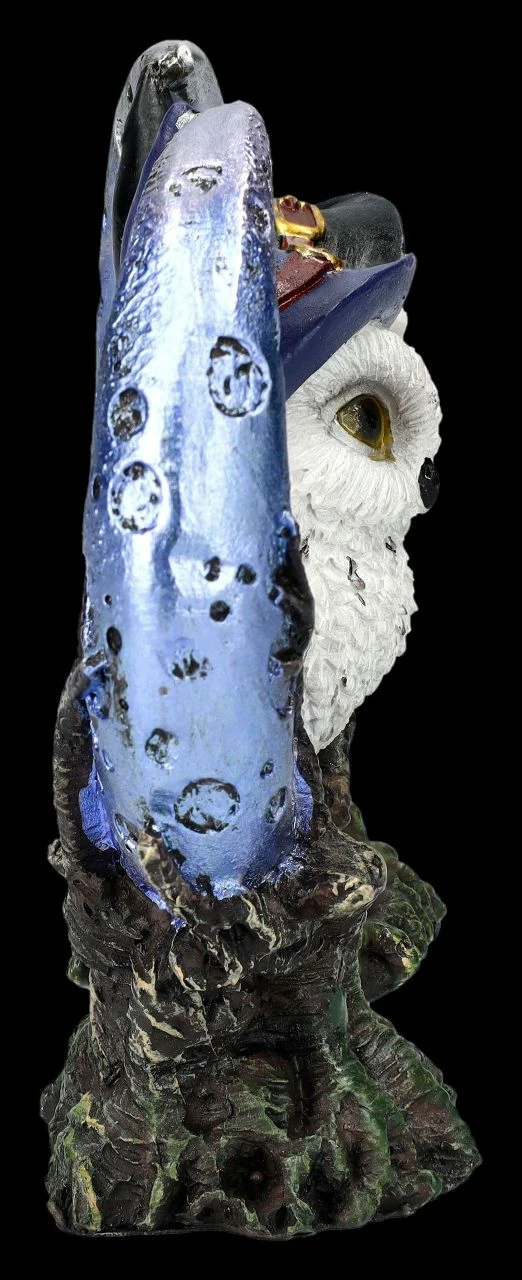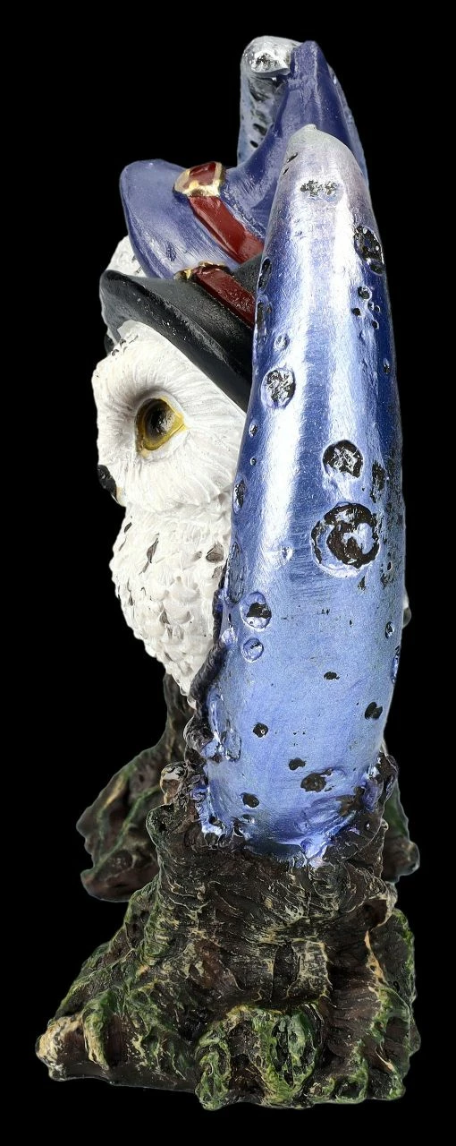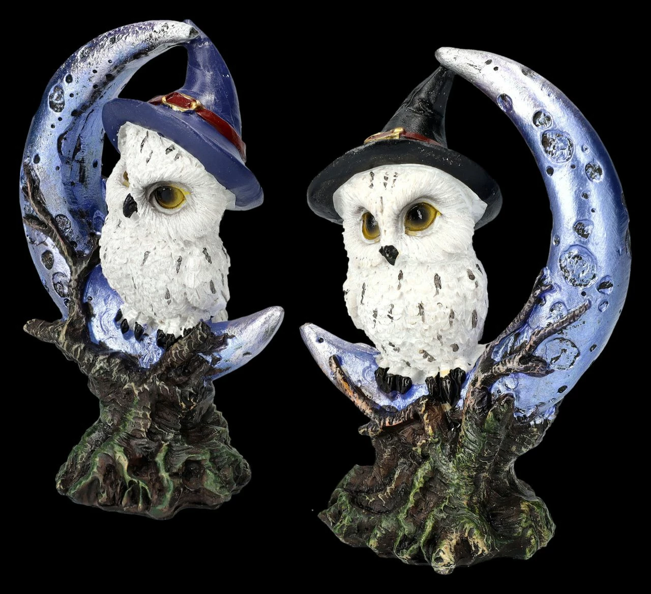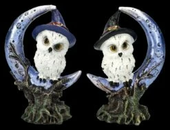 Einfach bezaubernd sind diese beiden auf den Mondsicheln sitzenden Schneeeulen aus liebevoll handbemaltem Kunststein (Polyresin). Auch wenn die je 12 cm hohen, je 8 cm breiten und je 5 cm tiefen Eulen Hexenhüte tragen, sind sie nicht nur an Halloween eine niedliche Dekoration. Da die beiden Eulen auf den silberfarbenen Mondsicheln im 2er-Set kommen, können sie sogar mit Freunden geteilt werden und sind so ein perfektes Geschenk.
