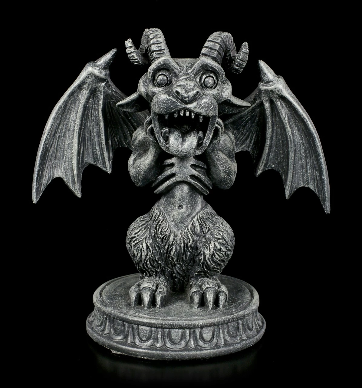 Sie sollen unser Haus vor bösen Geistern schützen und als Wächter dienen. So ganz für voll können wir den kleinen Gargoyle jedoch nicht nehmen. Grinsend mit herausgestreckter Zunge steht er auf seinen pelzigen Hinterbeinen und lacht uns entgegen. Aber dennoch, wir haben die handbemalte Figur aus Kunststein (Polyresin) sofort ins Herz geschlossen.