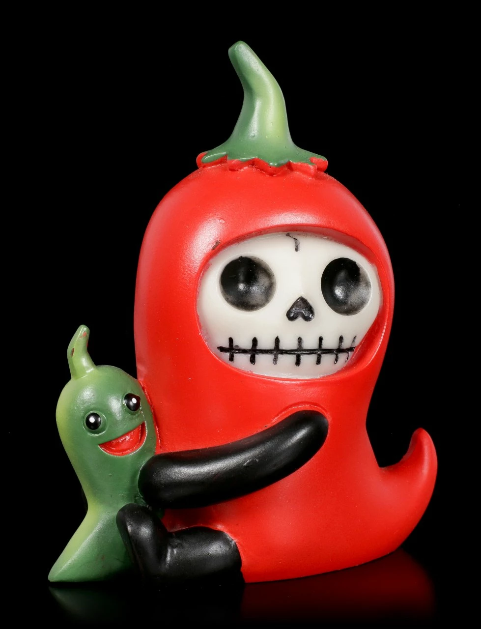 Scharf, schärfer, Chilito! Der kleine Furrybone hat sich heute mal so richtig in eine rote Schale geworfen. Chilito trägt sein Chili Kostüm und seine grüne Kuschelchili hat er gleich mitgenommen. Die süße handbemalte Kunststein (Polyresin) Figur aus der Summit Collection ist für alle die gerne scharf essen ein Must Have.