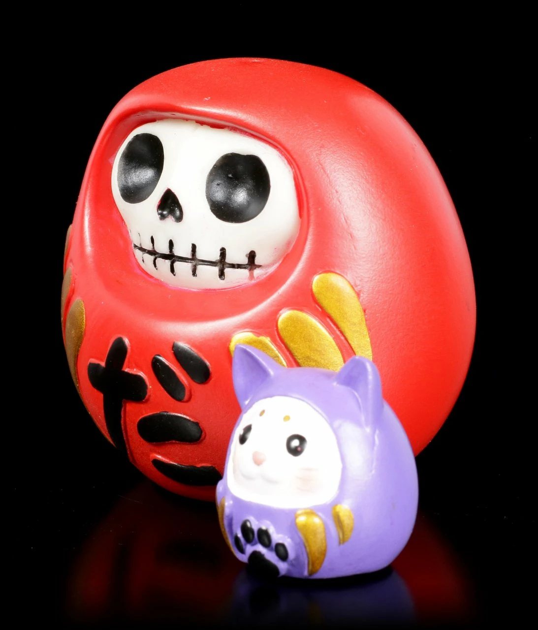 Daruma zählen zu den beliebtesten Glücksbringern in Japan. Sie stehen zudem für die Kraft und den Mut, auch in schwierigen Situationen wieder aufzustehen. Der kleine Furrybone hat sich als Daruma verkleidet und als Spielgefährte hat er seine Glückskatze dabei. Die handbemalte Figur aus Kunststein (Polyresin) ist ein wunderbarer Glücksbringer und ein niedliches Geschenk für einen lieben Menschen.