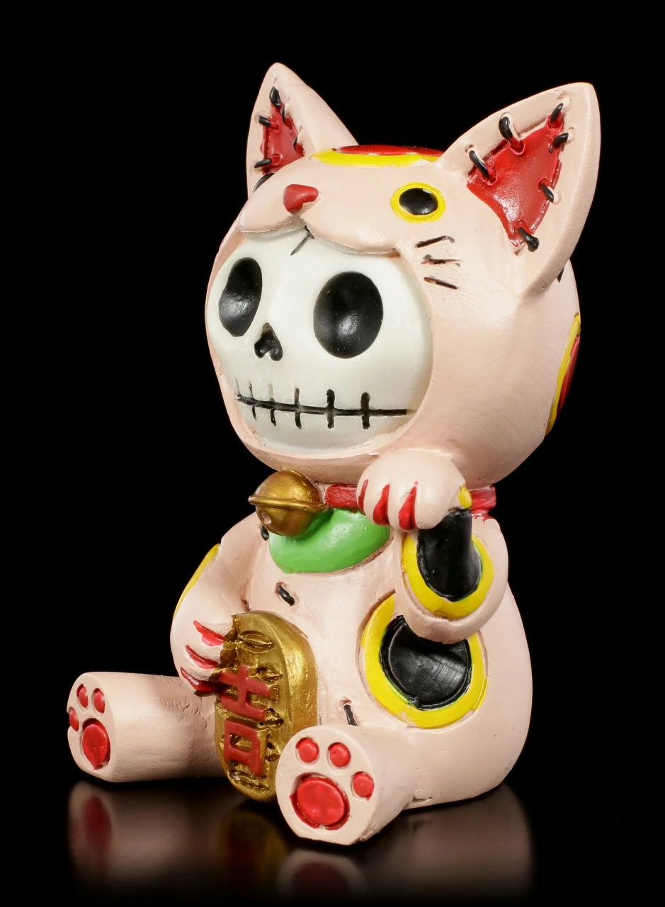 Die kleine rosafarbene Katze Maneki Neko winkt lustig mit ihrer Pfote. Ganz wie ihr japanisches Vorbild bringt das niedliche Furry Bones Monster Ihnen Glück. Die niedliche Furry Bones Figur aus Kunststein (Polyresin) wurde liebevoll ausgearbeitet und handbemalt.