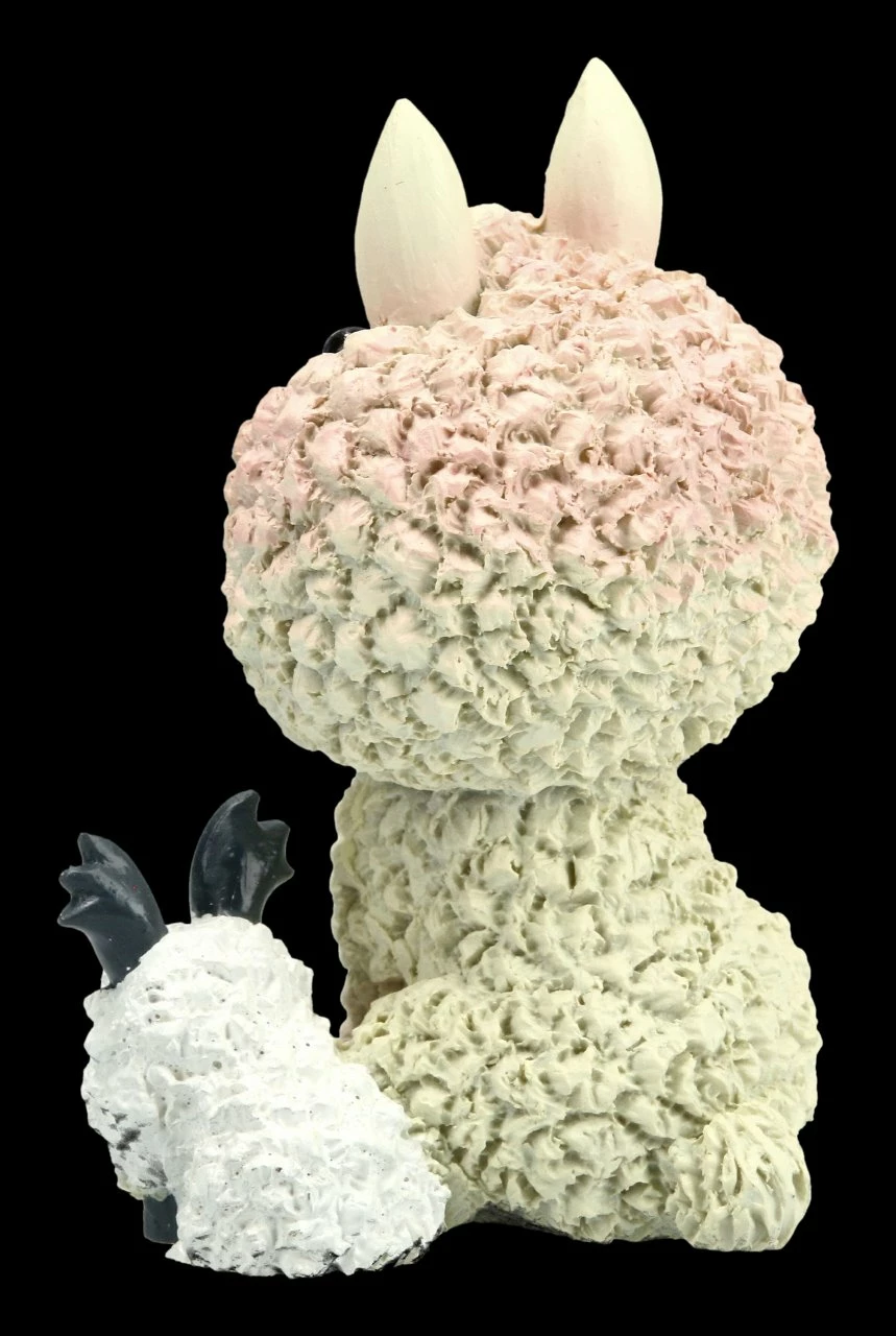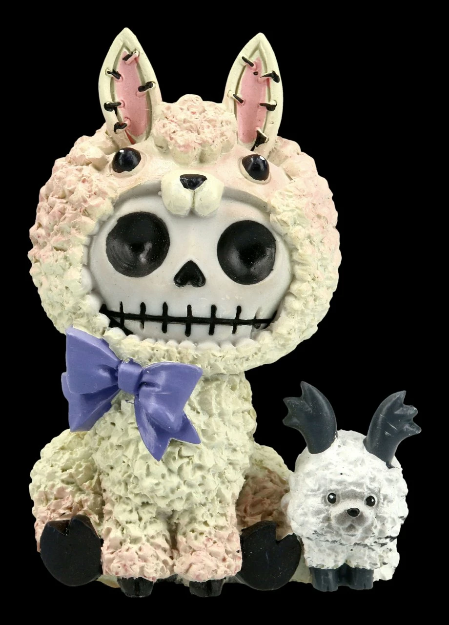 Da hat sich die Furrybones Figur als absolut niedliches Alpaka Paco verkleidet und sieht damit richtig kuschelig aus und nur wenn man genau hinsieht, fällt der grinsende Totenkopf unter der Kapuze des Kostüms auf. Niedlich oder beängstigend – das muss jeder für sich entscheiden. Das gilt sicher auch für die witzige Furrybones Figur als Alpaca Paco mit dem kleinen, neben ihm sitzenden Alpaca. Die lustige Furrybones Figur aus der Summit Collection ist sehr detailreich aus Kunststein (Polyresin) gefertigt und liebevoll handbemalt. Mit der Höhe von 8,5 cm, der Breite von 5,5 cm und der Tiefe von 4,5 cm ist die Furrybones Figur ein tolles Geschenk für jeden Sammler, von dem sie trotz des eher fies grinsenden Gesichtsausdruckes garantiert geliebt wird. Die lustige Furrybones Figur wird inklusive einer bedruckten Geschenkbox verschickt. Weitere Furrybones Figuren für Ihre Sammlung finden Sie in unserem Shop.