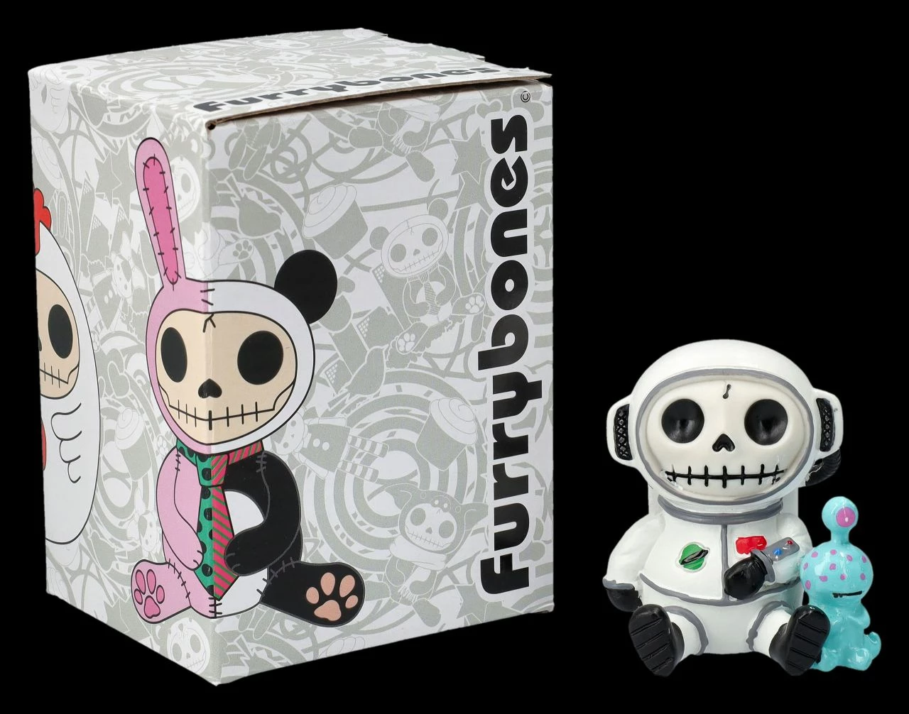 Als Science Fiction Fan wollte dieser kleine Kerl auch mal zeigen, dass er durchaus für einen Weltraumflug geeignet ist. Sicherheitshalber nimmt er aber dann doch sein eigenes außerirdisches Kuscheltierchen zur Unterstützung mit. Die niedliche kleine Furrybones-Figur als Astronaut Cosmo in dem weißen Astronauten-Overall ist liebevoll aus handbemaltem Kunststein (Polyresin) gefertigt. Das kultige kleine Skelettchen ist 6 cm hoch, 6 cm breit und 5,5 cm tief. Als original Furrybones-Figur ist der Astronaut Cosmo nicht nur eine witzige Deko, er ist auch ein Super-Geschenk für Sammler und alle, die von den frechen kleinen Kerlen begeistert sind. Daher kommt er gleich in einem Geschenkkarton. Weitere niedliche Freunde von Astronaut Cosmo sind.in unserem Shop zu finden.