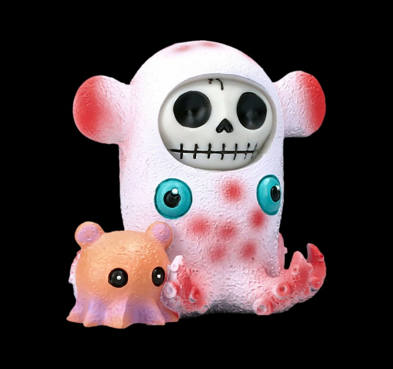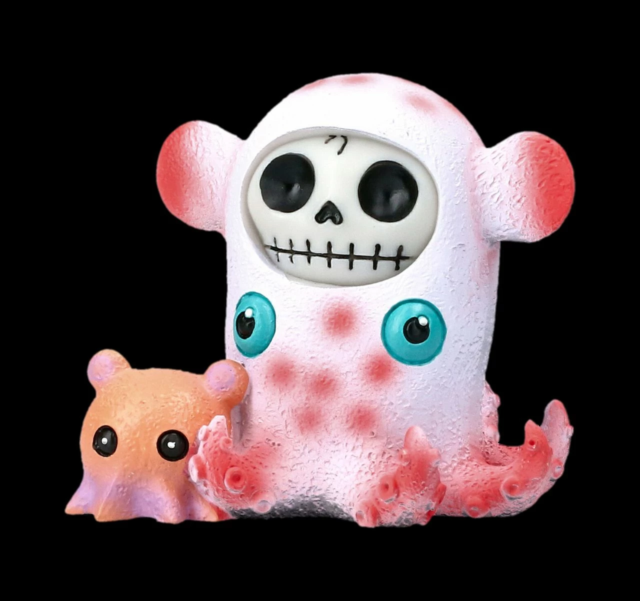 Oh wie süß – oder doch nicht? Auch wenn der Octopus Dumbie vielleicht sprachlos ist, genug Augen hat er jedenfalls und der kleine Octopus daneben ist ja auch noch da. Für alle, die dieses niedlich-gruselige kleine Skelett aus handbemaltem Kunststein (Polyresin) noch nicht in ihrer Sammlung haben: Dumbie ist 7,0 cm hoch, 8,0 cm breit und 6,5 cm tief. Die niedliche Furrybone-Figur wird inklusive Geschenkverpackung verschickt, da Dumbie natürlich auch ein tolles Geschenk für Sammler ist. Sie lieben Furrybones? In unserem Shop finden Sie noch weitere Figuren für Ihre Sammlung.