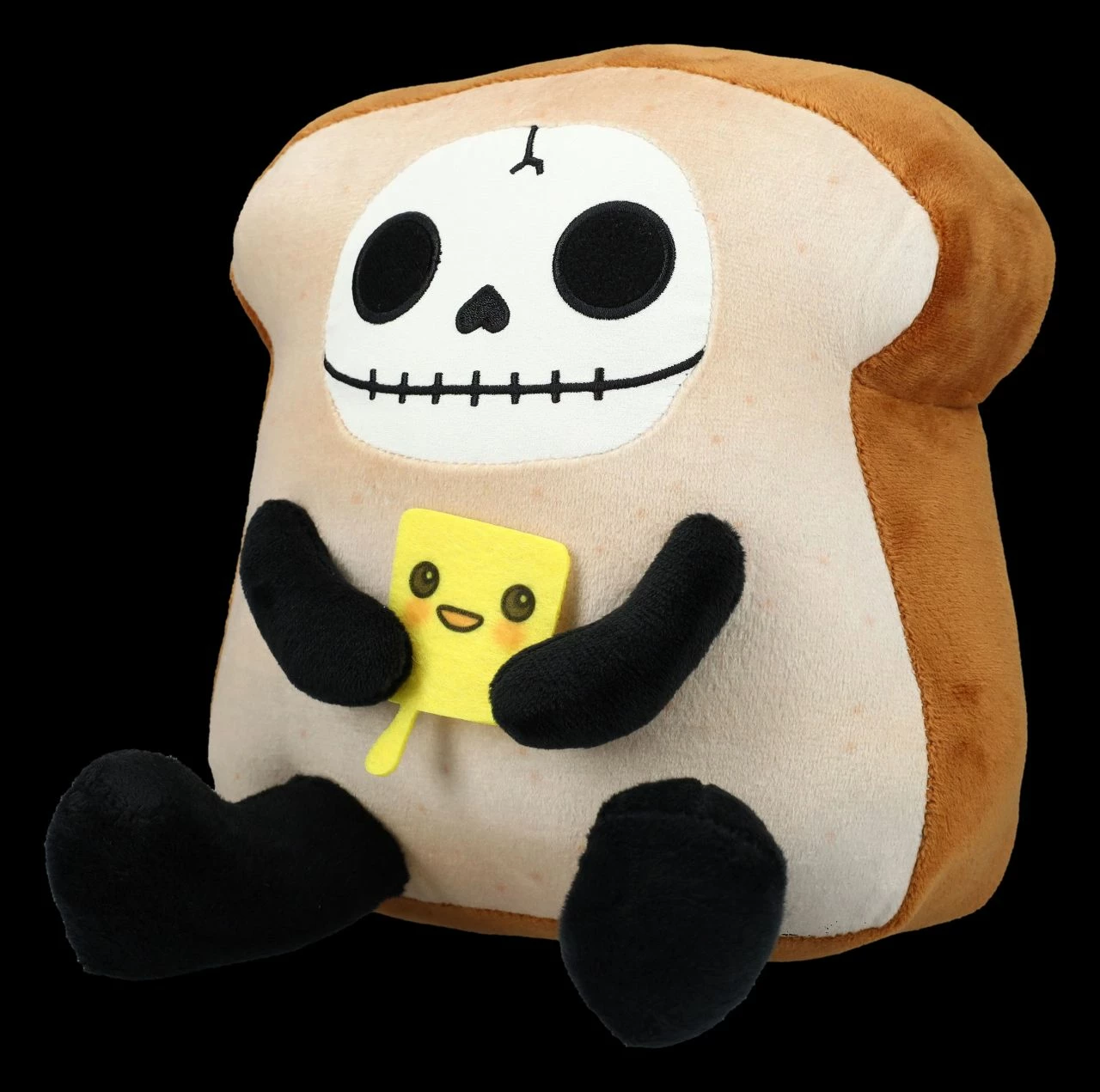 Ein Toast mit einer schmelzenden Käsescheibe zum Frühstück gefällig? Reinbeißen wird man aber in das als Toast verkleidete niedliche Furrybone-Skelettchen sicher nur im Notfall. Denn die putzige Furrybone-Plüschfigur Toasty wurde aus kuschelig weichem 100 % Polyester gefertigt. Für Babies und Kleinkinder ist sie trotzdem nicht geeignet. Aber schließlich lieben nicht nur Kinder Kuscheliges. Auch alle Gothic- und Halloween- und Manga–Fans werden sich darüber freuen, wenn sie das 21 cm hohe, 18 cm breite und 17 cm tiefe plüschige Totenkopf-Figürchen Toasty als Geschenk überreicht bekommen. Sammler finden übrigens eine große Auswahl an weiteren niedlichen Furrybone-Figuren in unserem Shop.