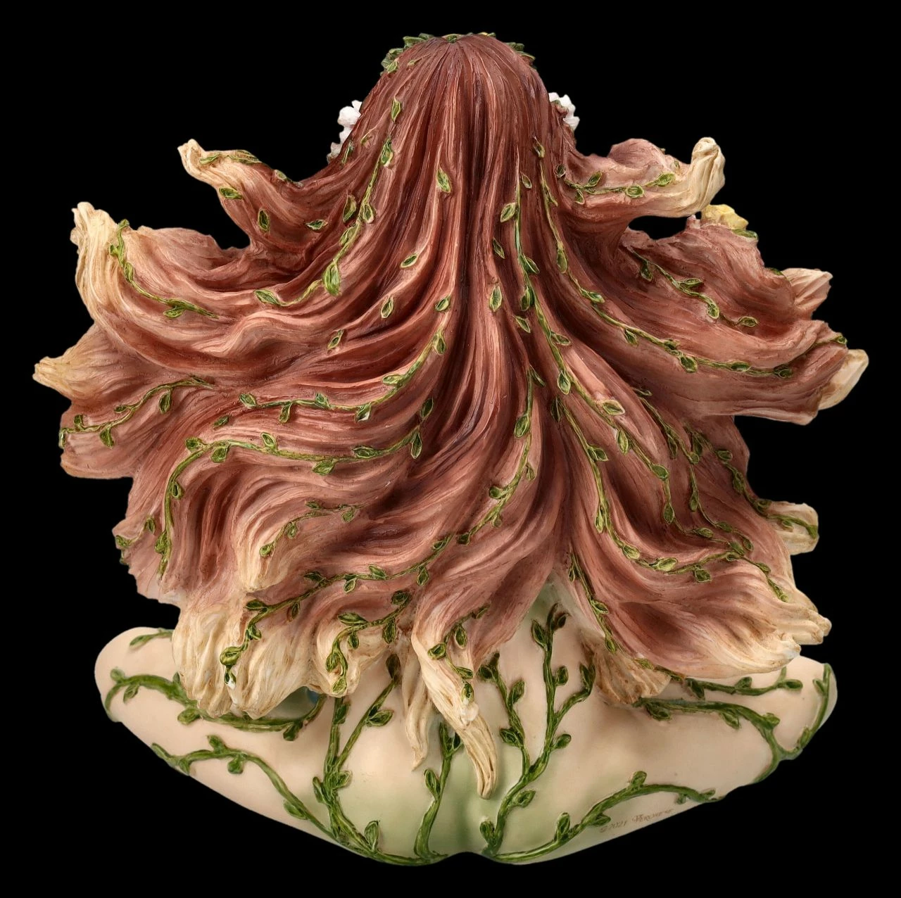 Sanft lächelnd, die Hände zärtlich um ihren schwangeren Bauch gelegt, den man unschwer bereits als Erde erkennen kann, sitzt Gaia, die in der altgriechischen Mythologie als Mutter Erde verehrt wurde, auf dem Boden. Die alten Griechen nannten die erste Göttin auch die ‚Göttin mit der großen Brust‘ und die Brüste dieser zauberhaften Gaia warten darauf, die Erde nach ihrer Geburt zu nähren. In ihren langen lockigen Haaren sammeln sich schon Blüten und Schmetterlinge, um nach der Geburt auf der Erde verteilt zu werden und zu Beginn einen Hauch von Frühling zu verbreiten. Grüne Ranken winden sich um den Körper der bezaubernden Gaia-Figur aus liebevoll handbemaltem Kunststein (Polyresin). Die 17 cm hohe, 17 cm breite und 9 cm tiefe Gaia-Figur aus der Studio Collection von Veronese spiegelt in ihrer Darstellung tatsächlich, Leben, Körperlichkeit, Fruchtbarkeit und Mütterlichkeit wider und ist ein wunderbares Geschenk für alle, die die Natur lieben und im Sinne der Mutter Erde schützen möchten.