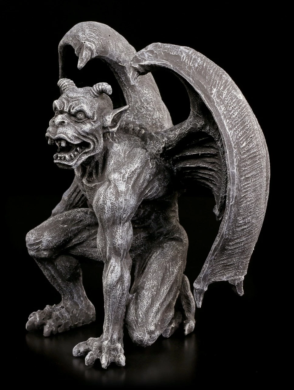 Der Gargoyle wartet auf die Nacht und auf seine Zeit. Erst da kann er sich von seiner Versteinerung befreien und durch die Dunkelheit streifen, um die Menschen vor dem Bösen zu schützen.