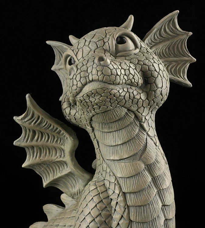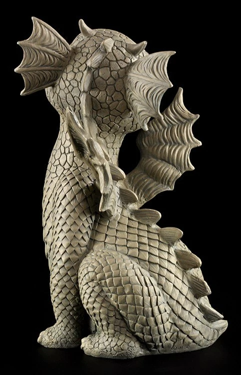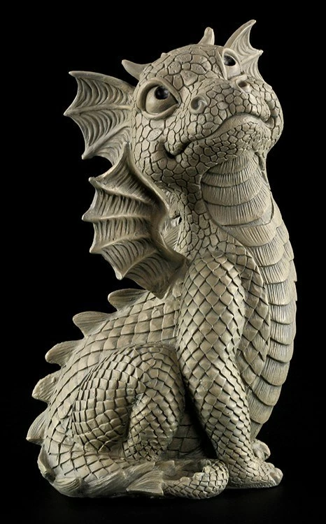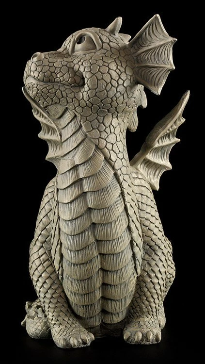 Der kleine Drache schaut keck nach oben. Er weiß, dass er unheimlich niedlich ist und ihm niemanden widerstehen kann. Die Gartenfigur ist aus hochwertigem Kunststein und frostbeständig. So darf der freche Kerl das ganze Jahr im Garten spielen.